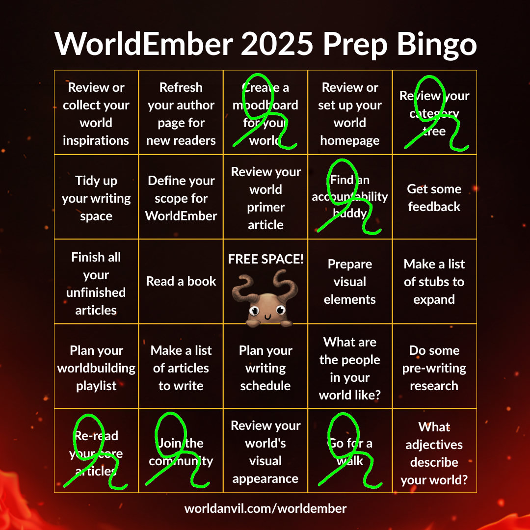 I pledge to write at least 10,000 words in the december challenge! I far exceeded the challenge last year by writing over 50,000 words but I'm going to take a bit easy this year. It's a lot of fun and a real challenge to write this much in a month. There's a big backlog of lore that needs to be written so it'll be nice to challenge myself to clear some of this writing.
