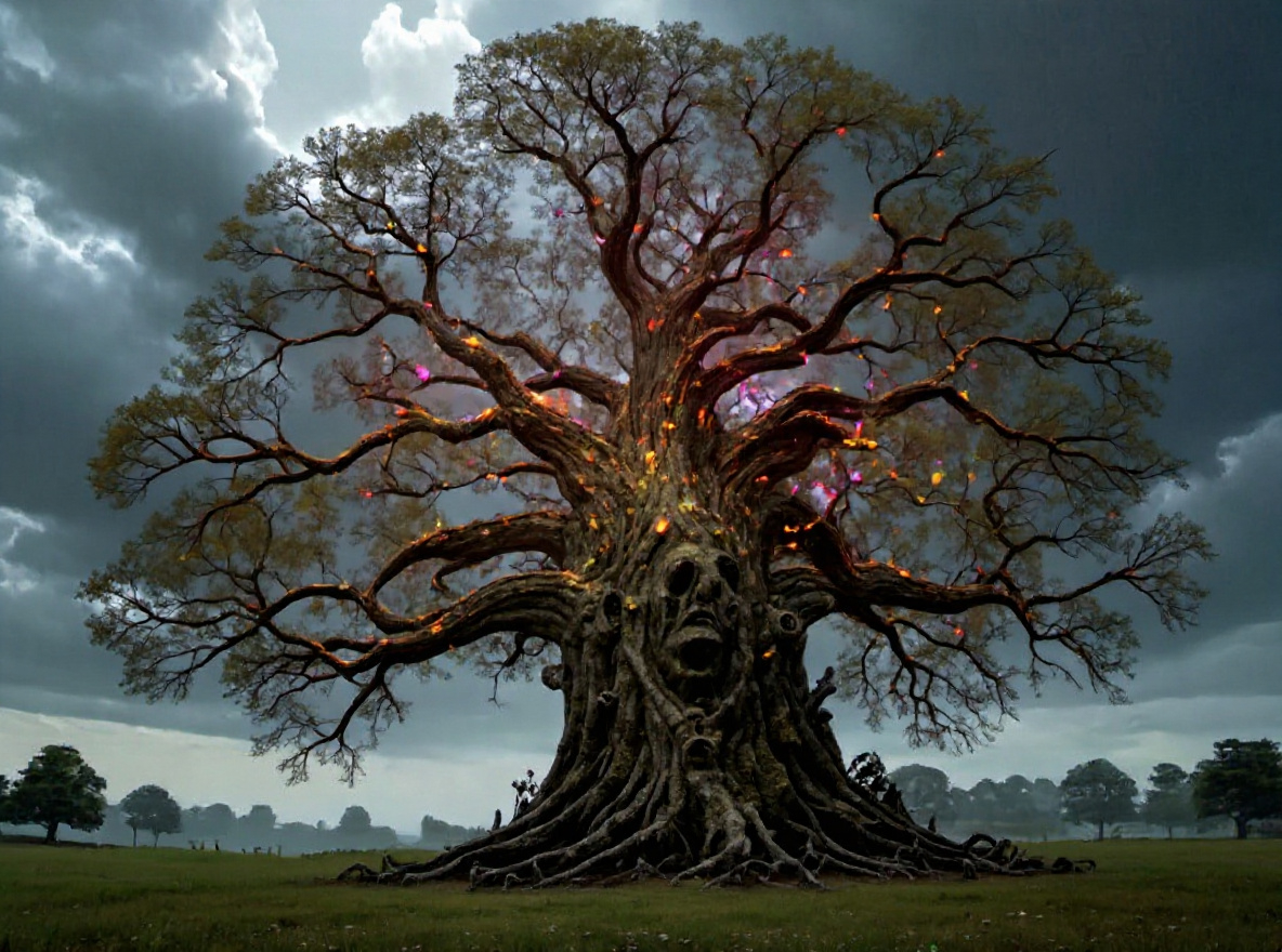 Flying up with the airship they head off to the portal back to the Witchlight Carnival grounds and they see everything has been burned and destroyed but no sign of the Witchhunters or their soldiers remain. Heading off to the next portal they fly into a dark realm of dusk and see a giant oak tree with many lights in its branches.