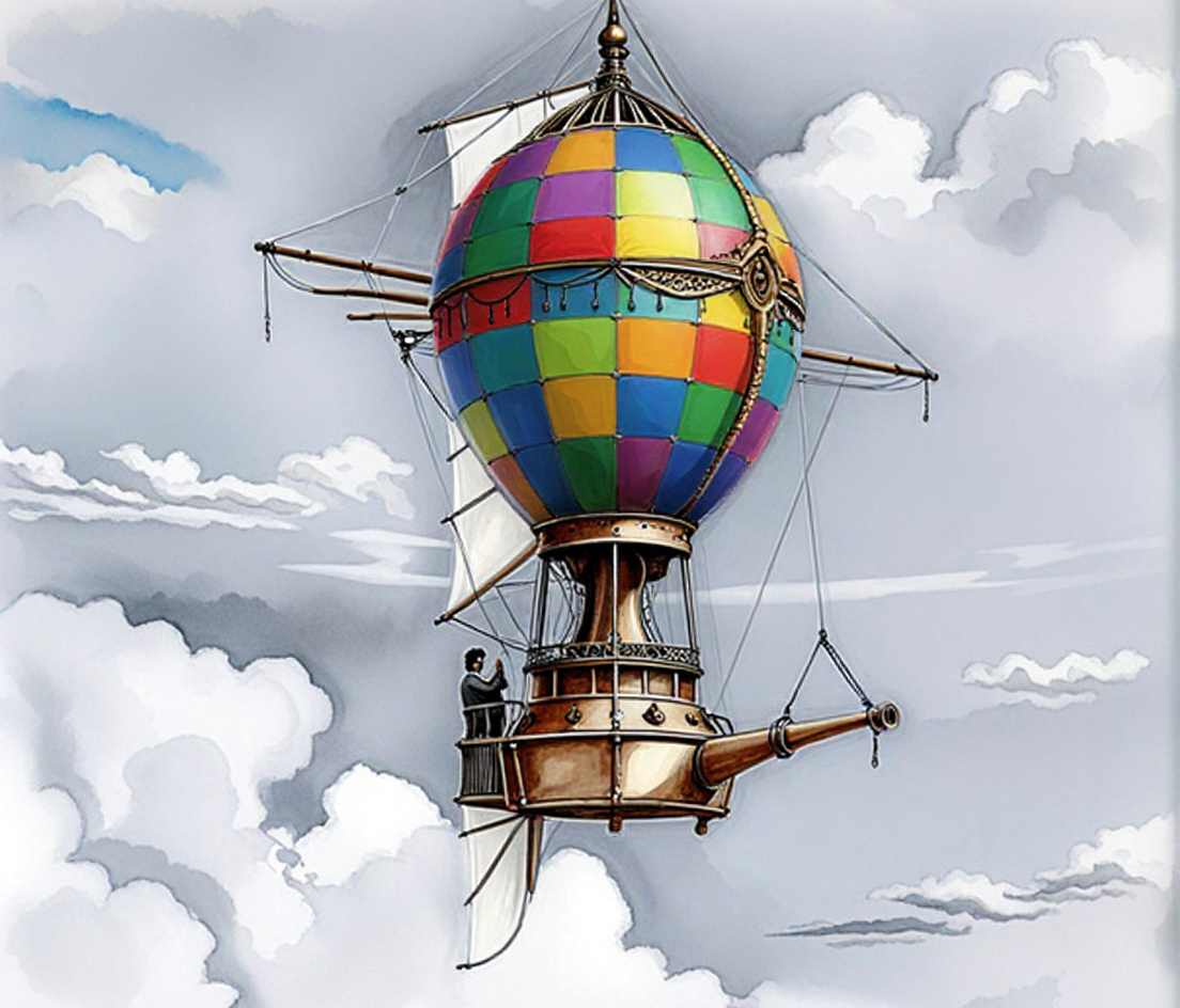 Colourful circus tents and wagons circle the tower with folk wandering around. Leo Longclaw sees Saruske on the flying machine and calls for everyone to welcome them. After they land they resupply and rest for 1,5 days painting the balloon and crafting supplies.