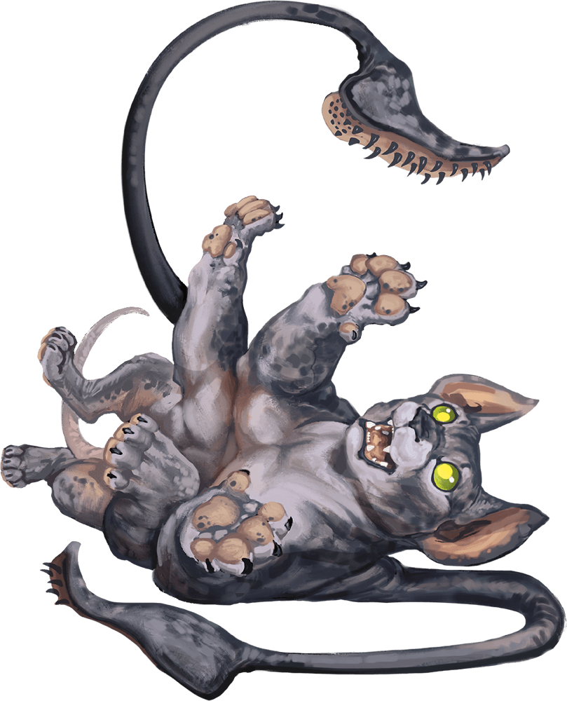 Among the branches of the tree they find a Displacer Beast Kitten and they decide to take him with them. They name it Jibbers.