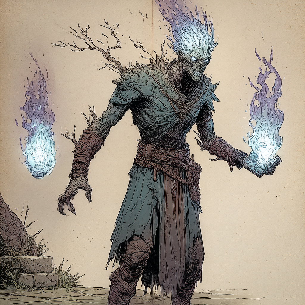 The Cauterai are fire-blooded humanoids whose bodies burn with a cold, pale flame that consumes Stillgleam wherever it touches it. Unlike the magically attuned races of the world, the Cauterai are born with latent magical potential that is forcibly removed during their sacred Rite of Ashbirth.