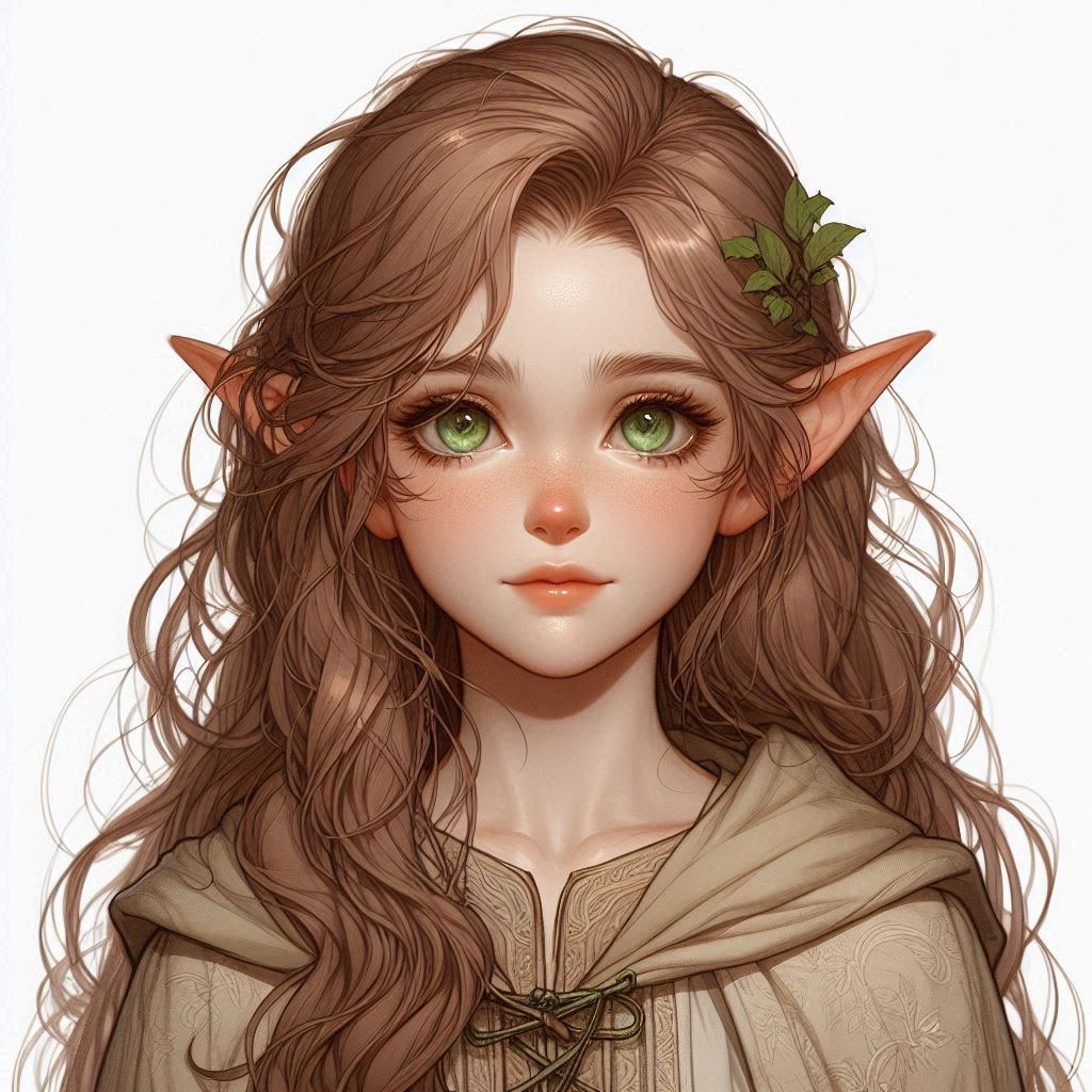 Mara is a grove-born half-elf child touched by destiny. Born within a druid grove, she lost her mother violently and witnessed terrible loss far too young. The Feywild awakened her latent magic, granting her a divine spark. Though only 11 years old, she is foreshadowed in druidic prophecy as a seed of divinity — one who may one day ascend as a minor earth goddess with an animal form. For now, she is an innocent girl who clings to her found family, radiating bright green energy when distressed and carrying the weight of grief and hope in equal measure.