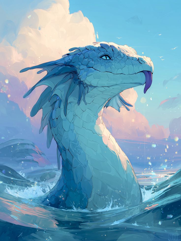 - Body Shape: Sleek and streamlined for swimming; slightly elongated limbs and tail compared to a land-based dragon of her age.