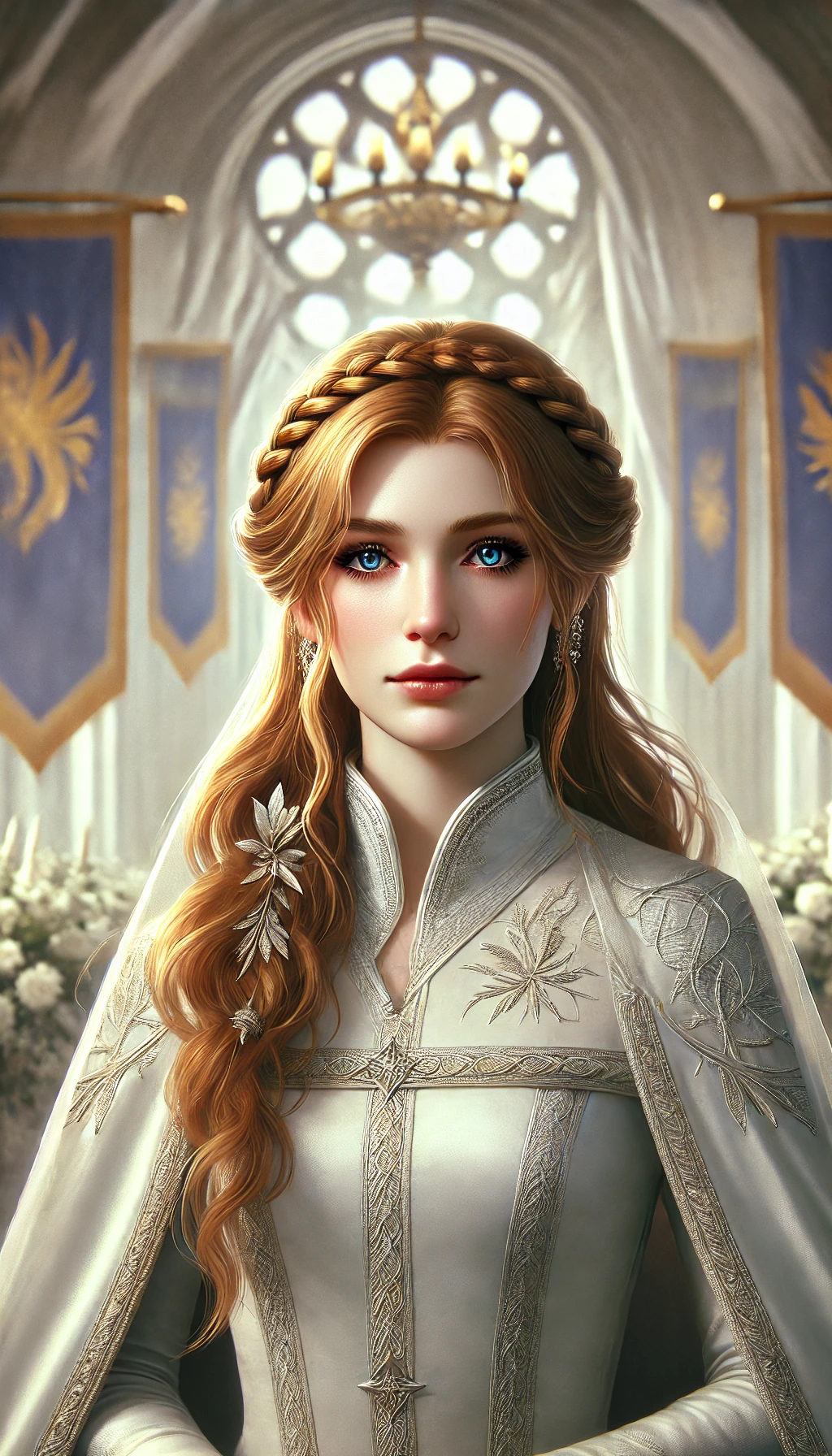 Née au Palais des Lumières de Valantyr, Elyria est la première fille du Roi Karodas Alamontyret de la reine Maerynna Alamontyr. Son éducation fut exemplaire : elle étudia la rhétorique, la diplomatie et la philosophie sous les meilleurs précepteurs du royaume. Très jeune, elle participa aux conseils royaux, assistant son père dans l’arbitrage des affaires de la noblesse. Son mariage avec Zendrix Sorentor fut à la fois une union stratégique et une alliance naturelle : il scella la fidélité de la maison Sorentor à la couronne, tout en assurant à Elyria une position de force dans l’est du royaume.