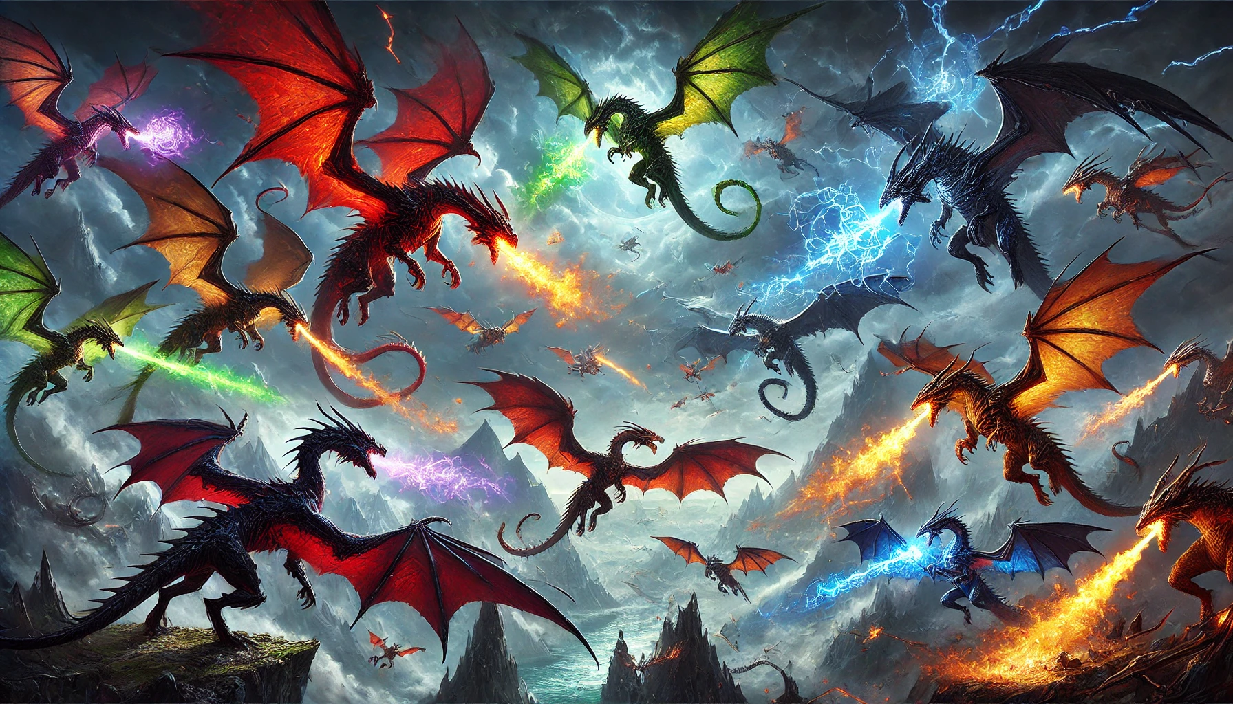 Lythmar représentait le cœur spirituel des dragons métalliques : un lieu où les premiers nés d’or, d’argent et de bronze se liaient aux forces de la nature et méditaient sur l’équilibre du monde. Voyant là une faiblesse symbolique, les dragons chromatiques, menés par Xyntheris et Syraxar, déclenchèrent une attaque coordonnée. Pendant soixante jours et soixante nuits, le ciel au-dessus de l’île de Lythmar fut embrasé par les flammes et assombri par les nuages empoisonnés. Des dragons noirs polluaient l’air de leurs miasmes tandis que les verts tentaient de submerger les enchantements du sanctuaire par leur magie corruptrice. Les défenseurs métalliques, menés par Thaliakaera et Ormyth, ripostèrent avec acharnement. La bataille fut remportée de justesse par les métalliques, mais le prix fut terrible : le sanctuaire fut irrémédiablement endommagé, ses pierres sacrées brisées et sa magie affaiblie. Ce fut une victoire amère, car les dragons métalliques perdirent leur plus puissant foyer spirituel, ce qui entama leur cohésion dans le conflit.