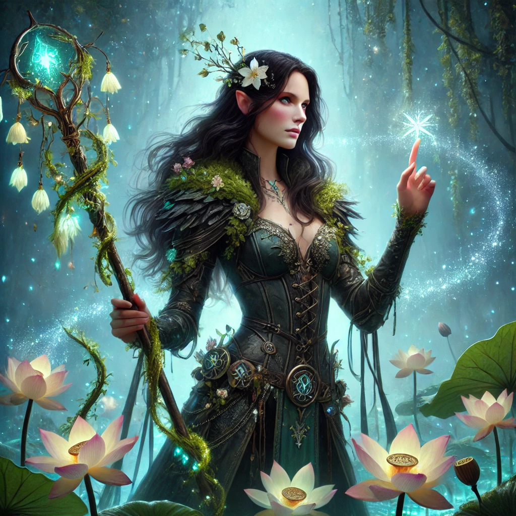Lysara de Marécante, surnommée « L’Ombrelotus », est une héroïne née dans le village de Marécante, à la lisière du redoutable Marais de Mélimbre. Fille d’un pêcheur humain et d’une herboriste elfe, elle a grandi entourée des mystères et des dangers du marais, développant très tôt un lien unique avec cet environnement hostile mais regorgeant de vie.