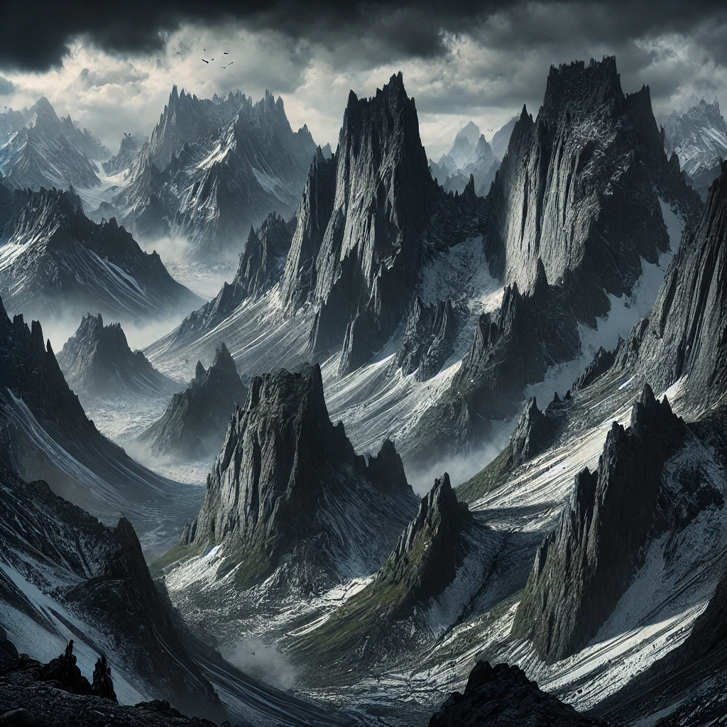 Légendes et Mythes. Les montagnes escarpées des Monts Crochus sont imprégnées de nombreuses légendes et mythes. Certains racontent que les montagnes sont peuplées par des anciens esprits de la guerre, des entités puissantes qui peuplaient ces terres bien avant l'ère des hommes. D’autres mythes prétendent qu’il existe des cavernes et des temples perdus sous les montagnes, renfermant des artefacts anciens de pouvoirs inimaginables, mais ces lieux demeurent introuvables, ensevelis sous des couches de neige et de pierres.