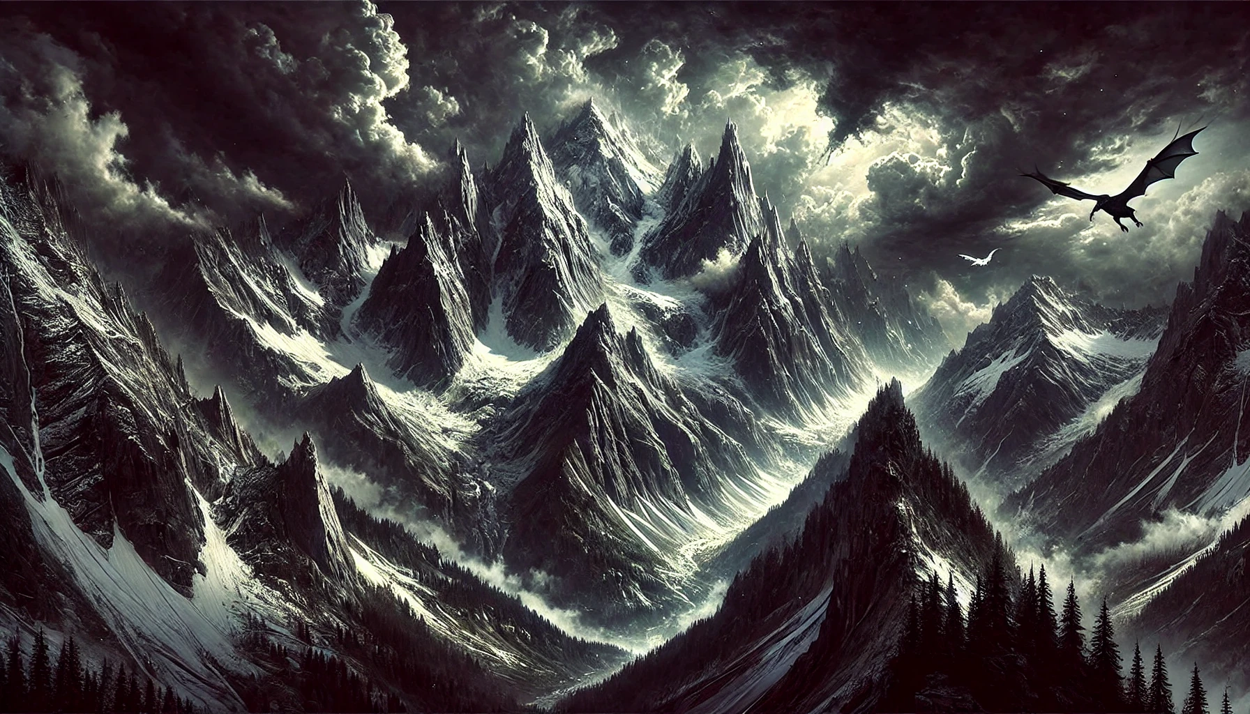 Le Pic des Ombres. Le sommet le plus élevé, connu pour être le refuge d’un puissant dragon-sorcier nommé Kaelthyrion, vénéré par plusieurs tribus orques.