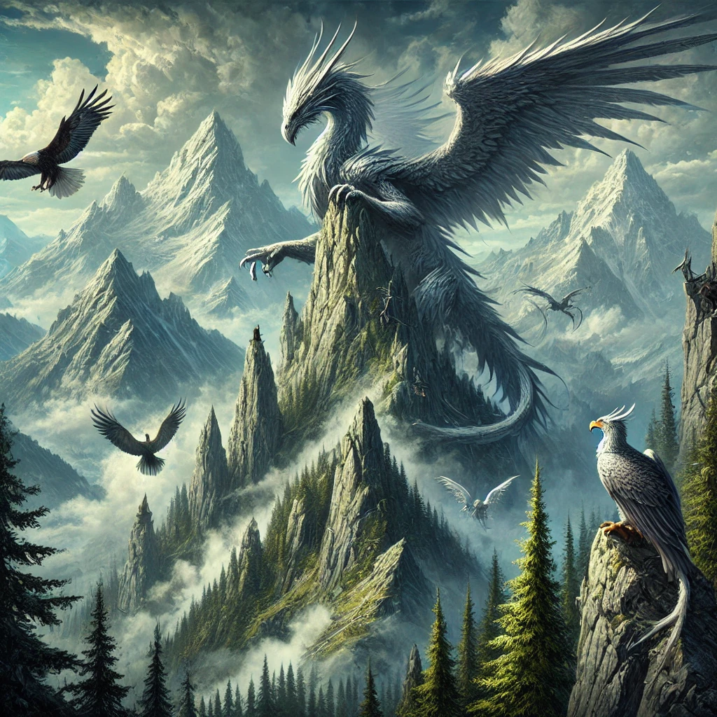 Le Pic Argenté est une montagne majestueuse qui s’élève à près de 3000 mètres d’altitude, dominée par une végétation dense de conifères robustes qui recouvrent ses flancs. Le sommet, qui effleure les cieux, est enveloppé dans un manteau de brume légère, créant une aura mystique autour de cette montagne vénérée. Ce sommet est un lieu sacré, abritant des créatures légendaires, des aigles géants, des griffons et des pégases, qui veillent sur le royaume elfique de Sylvareth. Au sommet de la montagne, les Dragons d'Argent résident également, ajoutant leur pouvoir mystique à la protection du royaume. Ces créatures majestueuses, symboles de sagesse et de noblesse, s’allient aux elfes pour maintenir l'équilibre dans la région.