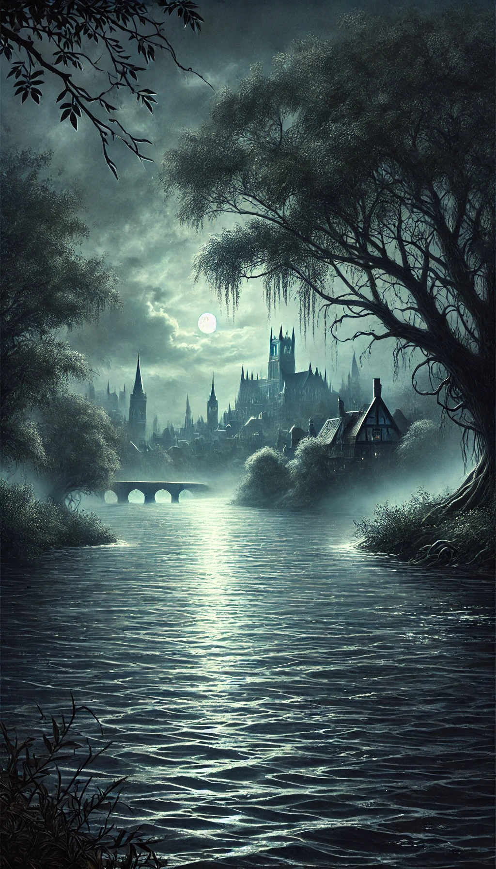 La Rivière Brumeuse est une large et majestueuse rivière qui traverse la cité de Castelbrume, ajoutant à son atmosphère mystique et gothique. Elle tire son nom de l’éclat argenté qu’elle reflète sous la lumière de la lune, semblant capturer la mélancolie et la beauté de la nuit. Bordée de vieux saules pleureurs et enveloppée de brumes permanentes, elle est à la fois un élément vital et symbolique pour la cité. La rivière Brumeuse sert de voie navigable, permettant le transport de marchandises et reliant Castelbrume aux régions environnantes. Ses eaux sombres et calmes reflètent les tours gothiques de Castelbrume, accentuant l’aura énigmatique et majestueuse de la ville. Les légendes locales racontent que ses eaux seraient bénies par les anciens dieux et abriteraient des esprits protecteurs, mais aussi des créatures plus sombres.