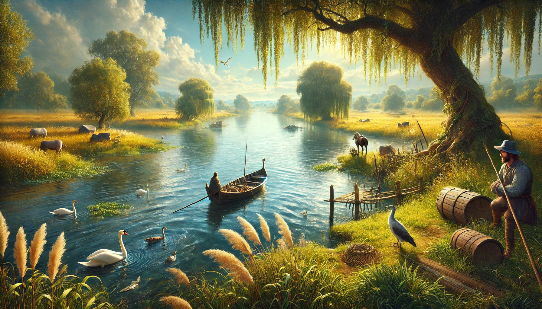 Importance stratégique et économique. Outre son rôle agricole, la Dévona est une voie marchande essentielle. De petites embarcations marchandes naviguent sur ses eaux calmes, transportant grains, fruits et tonneaux de vin vers le Lac Dévona et les routes commerciales qui en partent. Sa proximité avec Nystral en fait également un couloir économique stratégique reliant l’ouest fertile aux centres académiques et culturels de l’est.