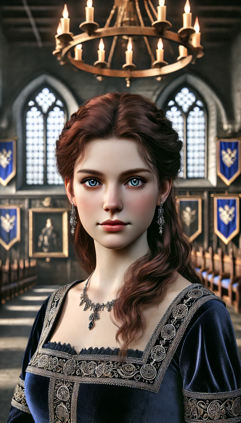 Description et apparence. Sylmara est une jeune femme de 22 ans, fine et élancée, mesurant un peu plus d’1,70 mètre. Ses cheveux d’un brun profond, parfois tirant vers l’acajou à la lumière, tombent en longues mèches soyeuses qu’elle tresse souvent en couronne. Ses yeux d’un gris-bleu limpide, presque identiques à ceux de son père, sont d’une clarté troublante : ils semblent sonder et analyser tout ce qu’ils observent. Son visage est délicat, mais marqué par une gravité qui dépasse son âge. Contrairement à son frère Kaelric Valendrin, Sylmara ne se pare pas de métal ou de cuir. Elle privilégie des robes sobres et élégantes en soie et velours, souvent de bleu nuit ou d’argent pâle, accompagnées de bijoux fins forgés par les artisans de Valusia. Cependant, lorsqu’elle voyage, elle porte un manteau sombre et pratique, adapté à ses déplacements discrets.