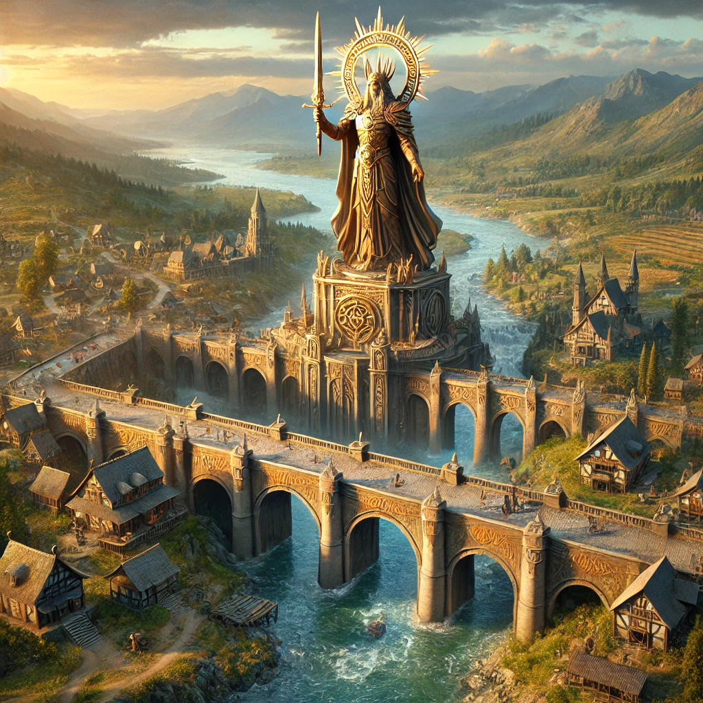 La Statue de Galdor de Grall. Érigée près du Pont de l’Aube, cette statue en pierre représente Galdor brandissant l’Aube de Célestia. Elle est un lieu de recueillement pour les voyageurs et un symbole de protection pour les villageois.