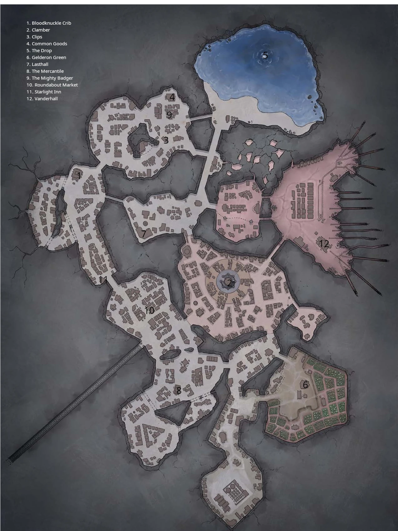 Home to the Vanderholl clan hall, and widely considered to be the heart of Stonebreach, it tends to house those who are more influential within the Ironhilt clans and is generally perceived to be full of staunch traditionalists.Spilldown