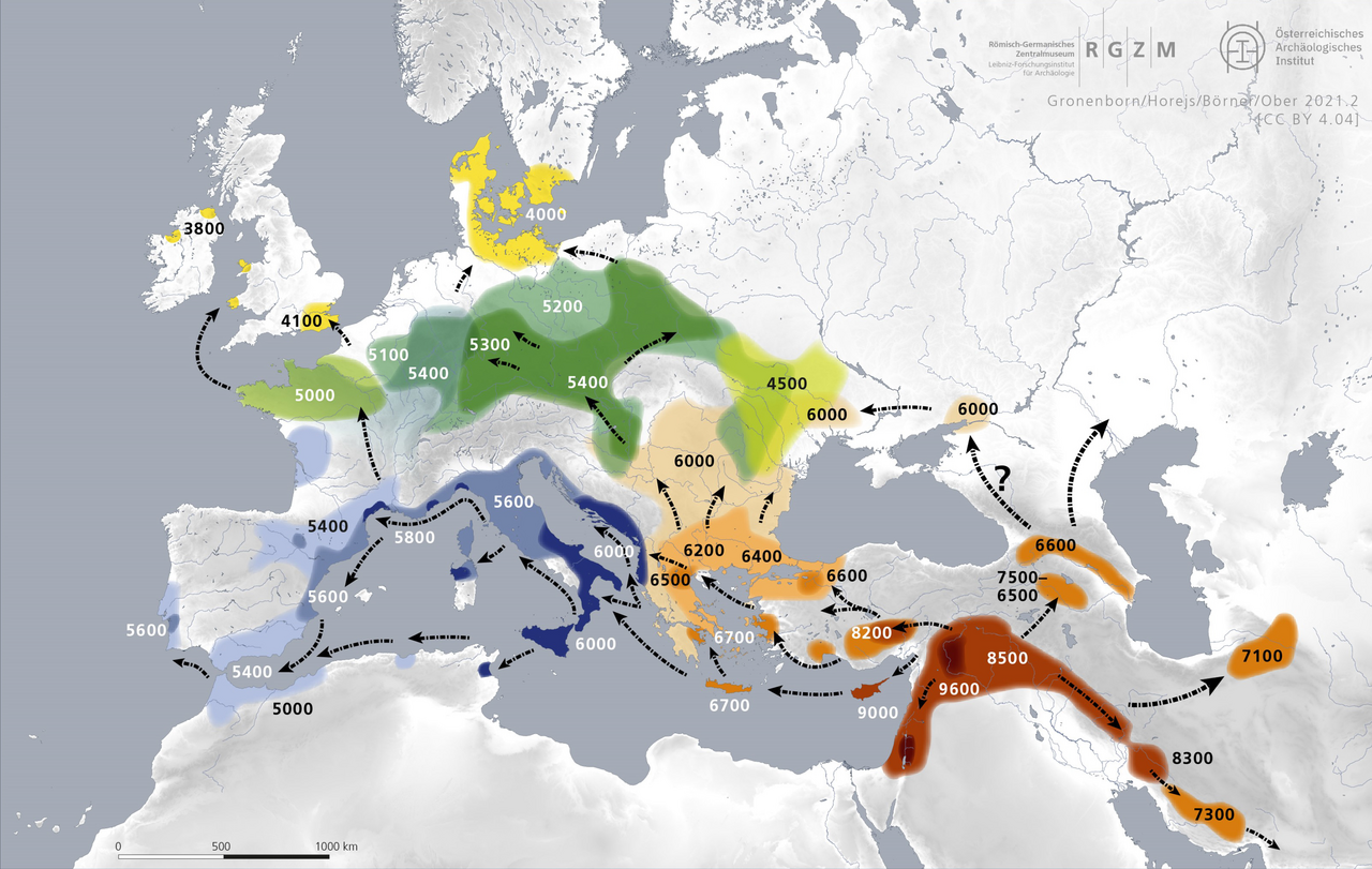Neolithic; Old Europe; Early European Farmer (EEF irrigationist; megalith and mound builders expanded from the Levant around 10,000 BCE and intermingled with existing European Hunter-Gatherer's from there to Northwest Europe and the Iberian peninsula by 4700 BC. That was roughly 5,300 years of new terraforming-settlement expansion.