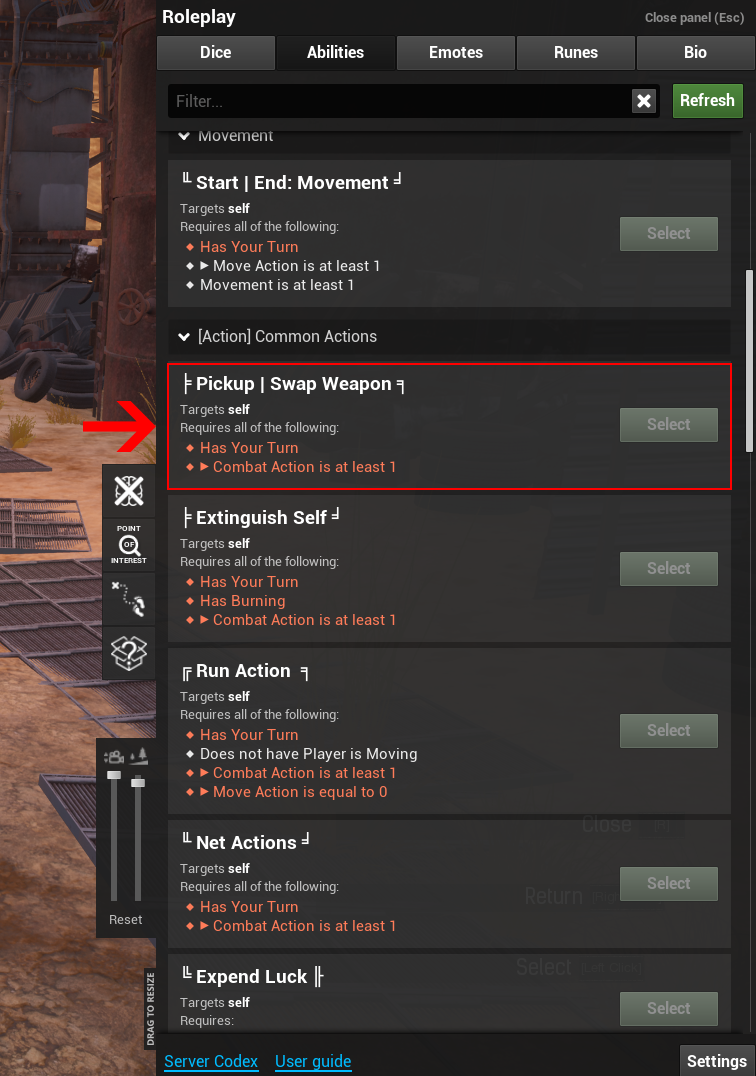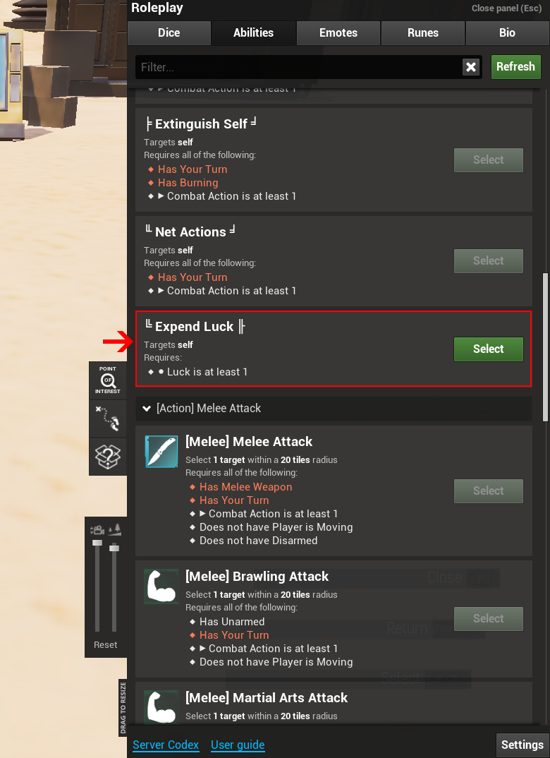 - Navigate to your 'abilities' tab in the Shift+R menu.