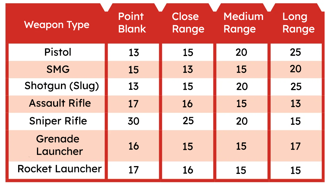 - Pistols doing 1d6–3d6 = ROF 2 (two shots).