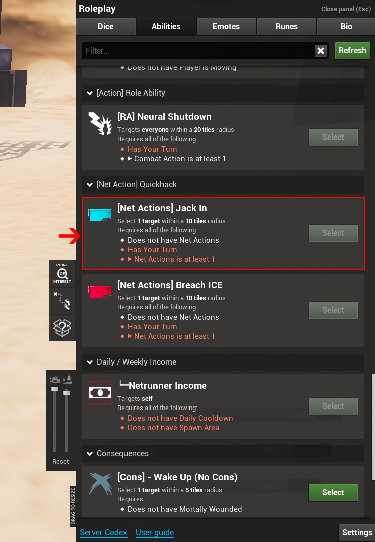 - Press 'Jack in' on a visible target with a neuroport.