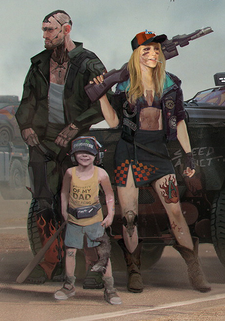 Your knowledge of roadcraft of how to get between the safezones over the savage highways has allowed you to become the masters of getting people, supplies, and materials to a world that desperately needs them. Like modern-day cowboys, you ride the hard trail. You've got a gun, a car, and your Family, and that's all you need.