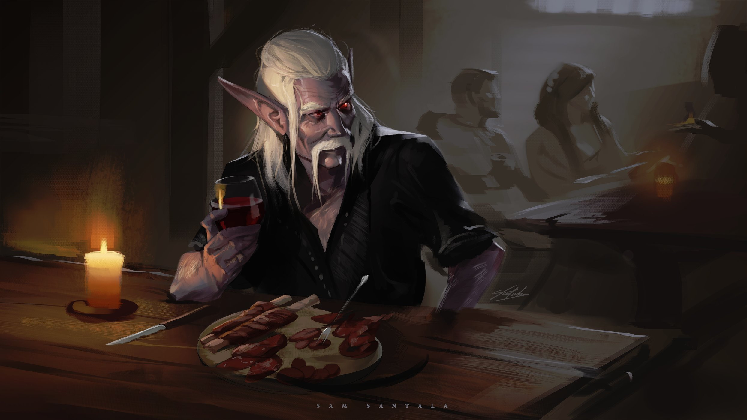 Like most Elven cultures, ancestors are of utmost spiritual importance. Dark Elves who can afford it often have ornate and refined family tombs where the dead are put to rest. During celestial events, such as the supermoon, it is not unusual for the family to descend into the tomb and burn Angel's Trumpet, a drug common in Elven spiritual traditions, to commune with their ancestors.