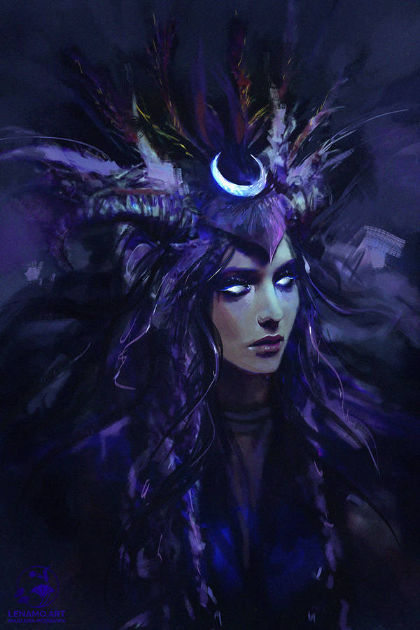 First created of all divine beings, Luna is the Twin of Dusk, created together with Yuna, the Twin of Dawn. In contrast to their twin, Luna represents darkness, chaos, change, and evil. They are associated with the moon, finality, death, fire, wind, and midnight. Luna is often draped in darkness and shadow, unable to be easily identified, causing a distinct discomfort wherever they go. When mortals find themselves in the presence of the Twin of Dusk, they may find themselves struggling to speak or think clearly due to their discordant aura. In mortal art, Luna is depicted as a gentle, androgynous spirit or saint, draped in robes of violet and moonlight. Despite the tendency of The Ten Divines to interact very little in mortal affairs, Luna remains a popular inspiration for many rebels to tradition, revolutionary spirits, and sowers of discord, as well as those who find their place in the shadows, outside of the so-called light of civilization.The Seed of Chaos
