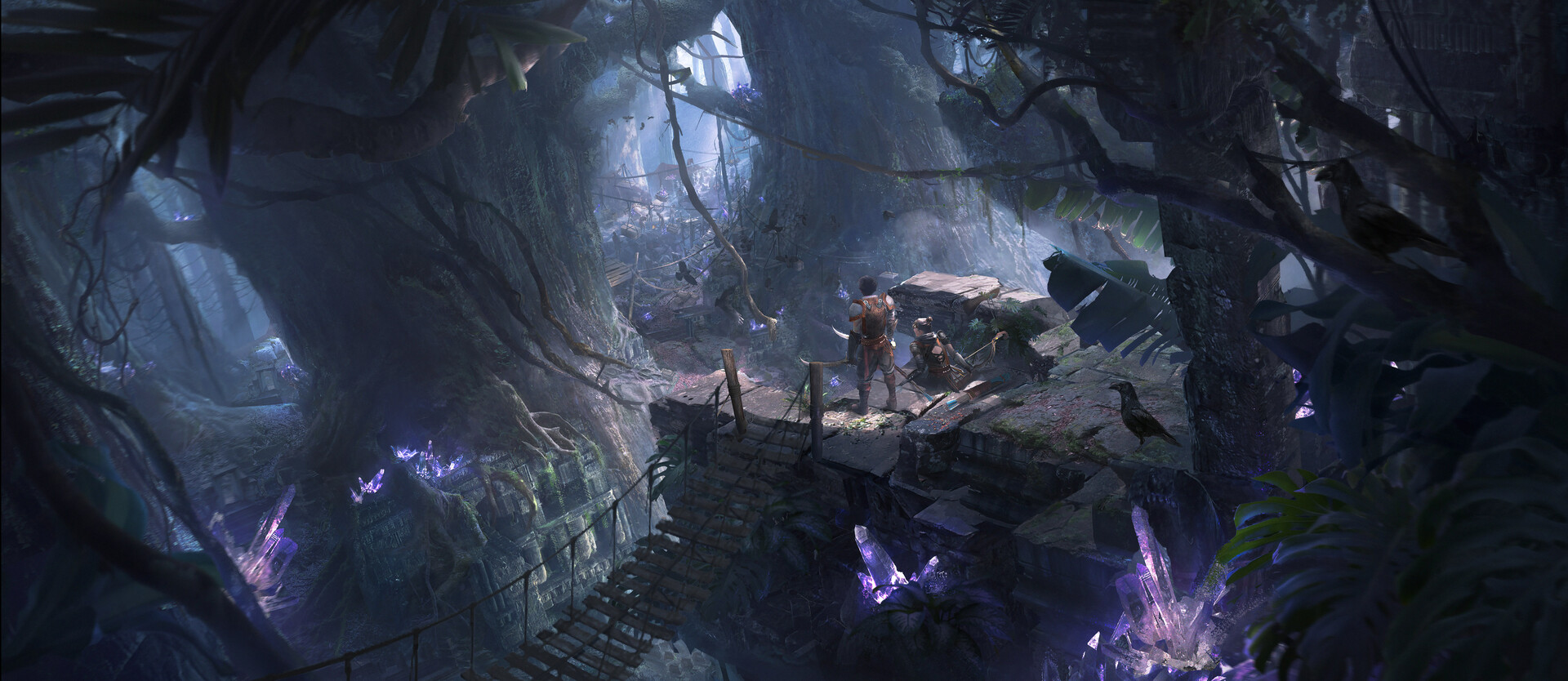 The Pink River Forest is a region (and river simply known as the Pink River) of mixed trees, including maple, pine, and the occasional oak. The forest and river gain their name from the curious pink crystal clusters found all around the region. The crystals are said to contain radiant magic that can be harvested and used to empower all kinds of items and spells. Several clans, especially Catfolk, have settled here throughout history and continue to thrive there to this day. There are also clans of humans, Minotaurs, and Aaracokra in lesser numbers. While the forest has no cities, it hosts several villages, trade posts, and lone landmarks. There are also many ancient ruins, caught in the overgrowth of the wilderness. It has been considered a major hub of trade, which Daeruin was eager to claim.
