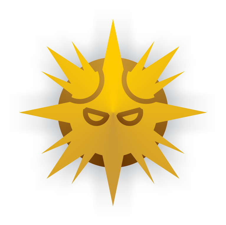 Objects and places dedicated to the cult of Haasat feature prominent eight-rayed sun motifs. To the extent that the mothfolk personify Haasat, only his four eyes appear within the disc, including two humanoid eye crescents in the center and two bulbous eyes partitioned from the upper sides. Altars, braziers, and dishware where rituals in propitiation of Haasat are to be carried out may only be carved from monolithic stone, copper, or bronze; priests to the sun god often have the contours of these implements burnt into their flesh from devotions at the midday zenith.