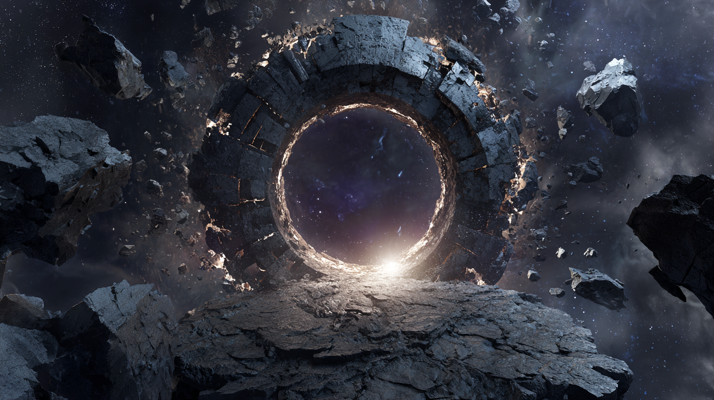 Kranjax knelt on the small, disjointed crag that was suspended in the starry void. His toes spread in his boots, as if trying to find purchase through their soles. He wiped sweat from above his eye with the back of his hand, sword still at the ready. His other hand had dug into to ground, as if anchoring to the fabricated reality with which he was infinitely more familiar. He glared up at the cracked and decrepit portal as both a hot and cold sweat ran down his back.