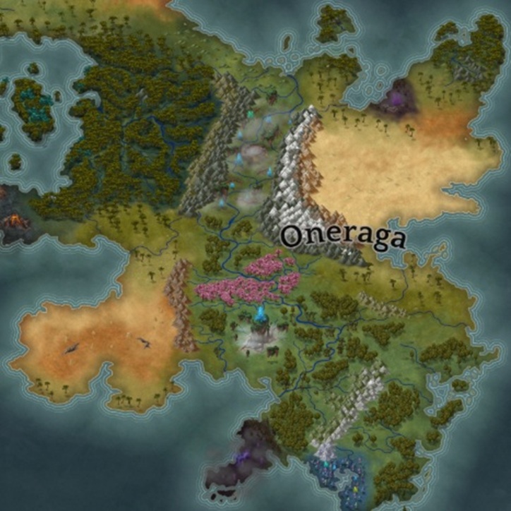 On both of its coastlines there are large desert region with warm regions or jungles along its edges. These used to be the main reason why Oneraga remained more isolated as only very few natural harbors exist around these areas. If any travel entered Onerage it was either through the southern edge of the Mizarin region or through the region north of the Epil Desert.