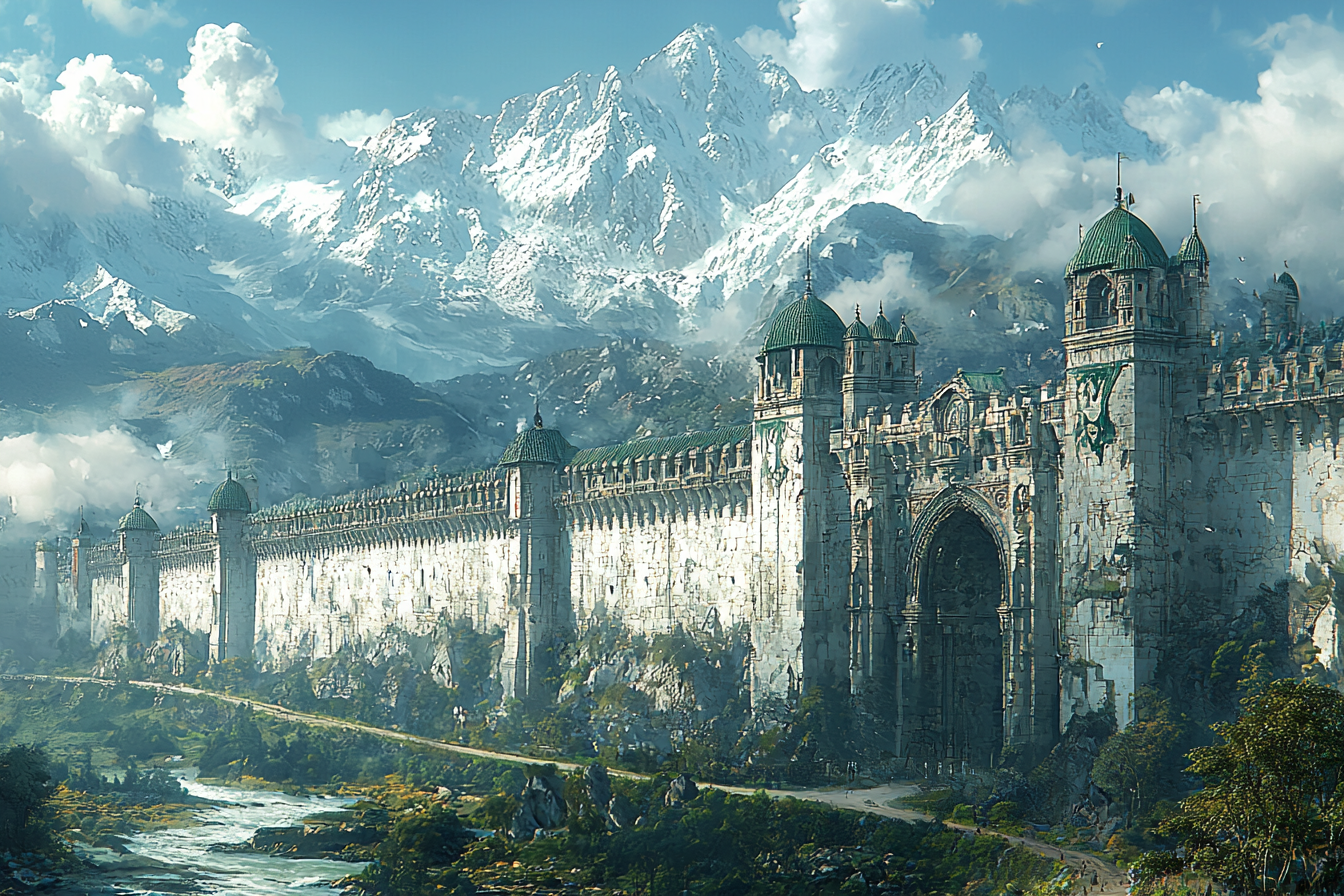 Those who travel north to Mervidel are rewarded with remarkable sights, but none more striking than the Handerlith Wall, the longest wall ever built. In ancient times it was built to protect the Elven lands to the north against incursions of the now long gone Selefer. Its western end starts at the Eganamya Mountains at the cliff side of a large mountain. At the other end a mountain pass in the Doromir mountains forms the last part of the wall.
