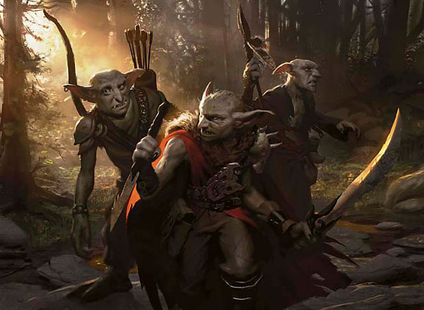 Goblins are a small and skinny people, relying on their cunning, traps, poisons, ambushes and sheer force of numbers to overpower larger and stronger prey and foes. A preference for raiding, ambushes and guerrilla warfare and avoidance of fighting out in open battlefields has earned them a reputation of being cowardly, although goblins themselves view this as common sense. Regarded as pests or a menace by most humans, goblins can prove valuable allies to those who can win their support. Often viewed as dim, goblins can prove exceedingly bright, leading to humiliating defeats for those who underestimate them.