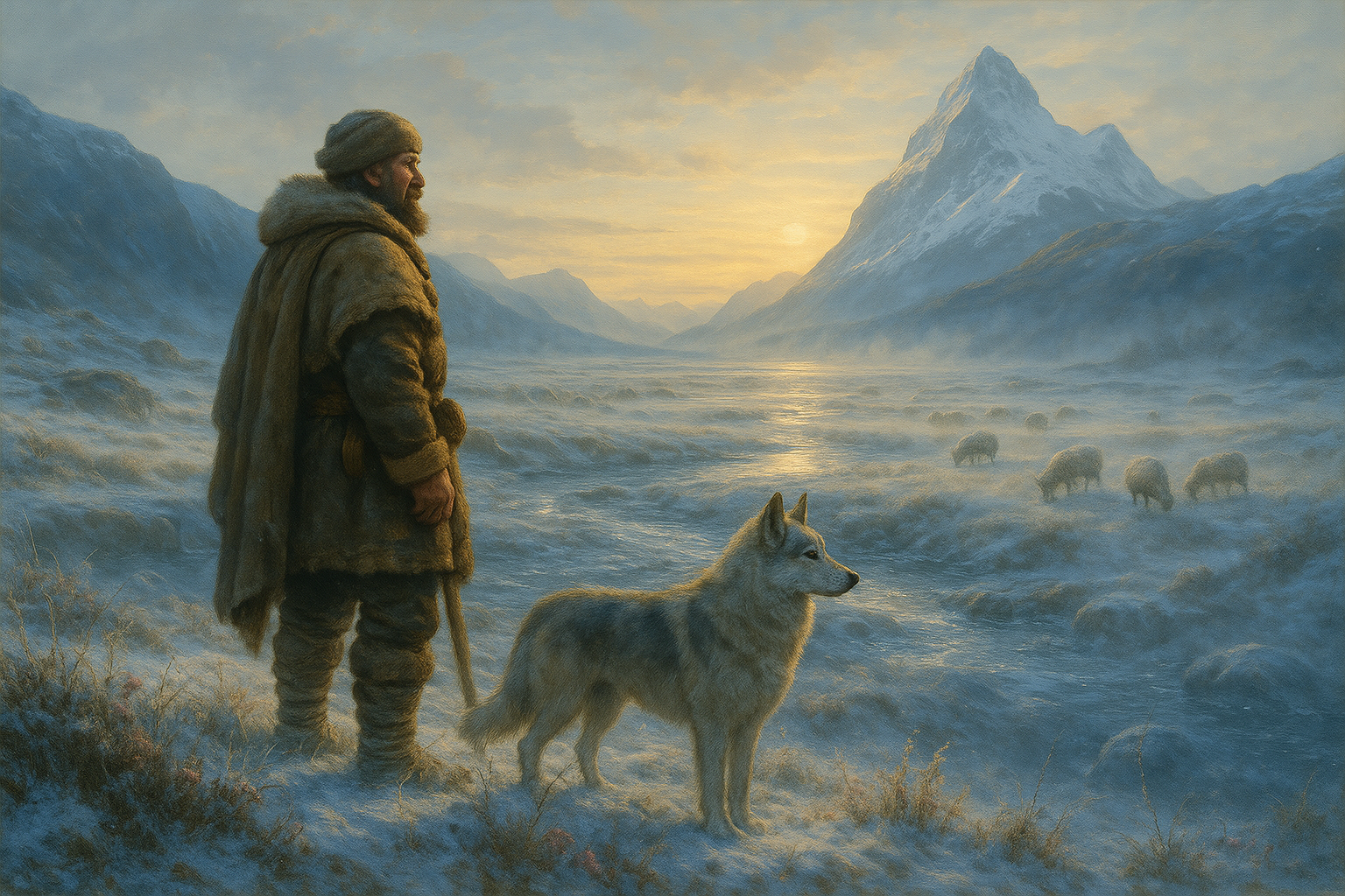 Die eisigen Wiesen von Frostgrim erstrecken sich zwischen den imposanten Gletschergipfeln und den tiefer liegenden Tälern, als ein stiller und doch pulsierender Lebensraum inmitten einer harten, frostigen Welt. Auf den ersten Blick scheinen diese weiten Flächen karg und unbarmherzig, doch bei genauerem Hinsehen offenbart sich eine Landschaft voller subtiler Schönheit und unerwarteter Lebendigkeit. Zarte Wildblumen, die in leuchtenden Farben durch den Schnee schimmern, und widerstandsfähiges Gras, das sich der Kälte trotzig entgegenstellt, verleihen den Wiesen eine fragile, beinahe traumartige Anmut. Die sanften Hügel und offenen Flächen wirken gleichzeitig beruhigend und majestätisch, während kristallklare Bäche sich durch das Land schlängeln und das Sonnenlicht in funkelnde Reflexionen verwandeln.