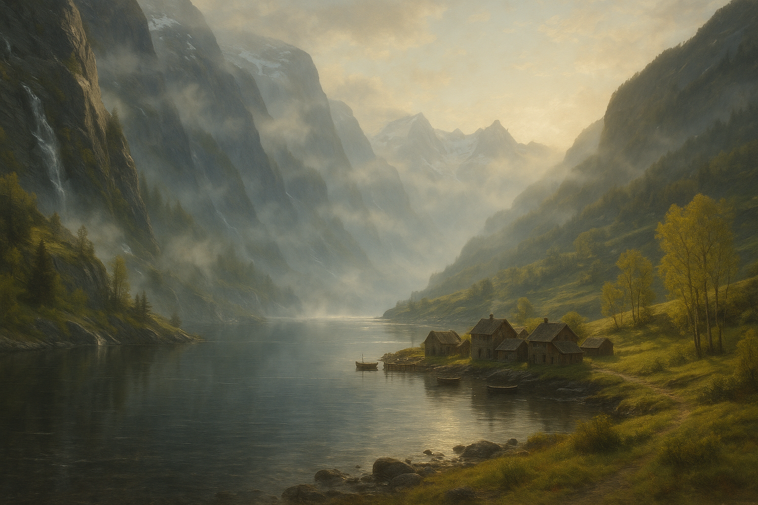 Die Geschichte von Fjordglanz erzählt von einer tiefen Verbindung zwischen den Menschen und dem Meer, die sich über Jahrhunderte hinweg entwickelt hat. Einst von wandernden Seefahrern entdeckt, wurde die Region zu einem lebhaften Zentrum des Fischfangs und Handels, das durch ihre strategische Lage am Ende des Fjords florierte. Alte Legenden berichten von „Meereswächtern“, mystischen Kreaturen, die die Bewohner bei ihren gefährlichen Reisen auf den Wellen beschützten und die Küsten bewahrten. Während der Ära der Großen Stürme hielten die Gemeinschaften von Fjordglanz zusammen und schufen dauerhafte Handelsbeziehungen, die die Region stabilisierten und zu einem kulturellen Mittelpunkt machten. Die traditionellen Feste, wie das „Licht der Fjorde“, bei dem beleuchtete Boote die Gewässer erhellen und Geschichten über die Geister des Meeres erzählt werden, sind bis heute ein Symbol für den Stolz und die Einheit der Bewohner. Fjordglanz ist nicht nur ein Ort physischer Schönheit, sondern auch ein Archiv von Geschichten, die die Lebensweisen, Überzeugungen und Traditionen der Menschen bis heute formen.
