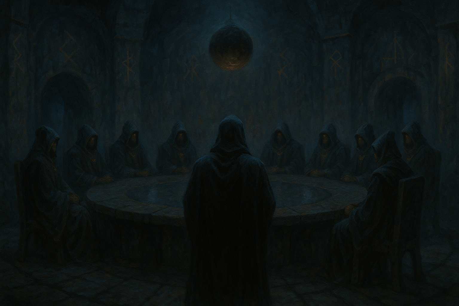 Tief im Innersten des Hafens liegt der steinerne Ring des Zirkels – der Versammlungsort der Anführer der Schattenhand. In seiner Mitte ruht das Herz der Stille, ein schwarzer Kristall, der das Rauschen des Meeres in sich trägt. Seine Macht hält den Hafen zusammen – und bedroht ihn zugleich.