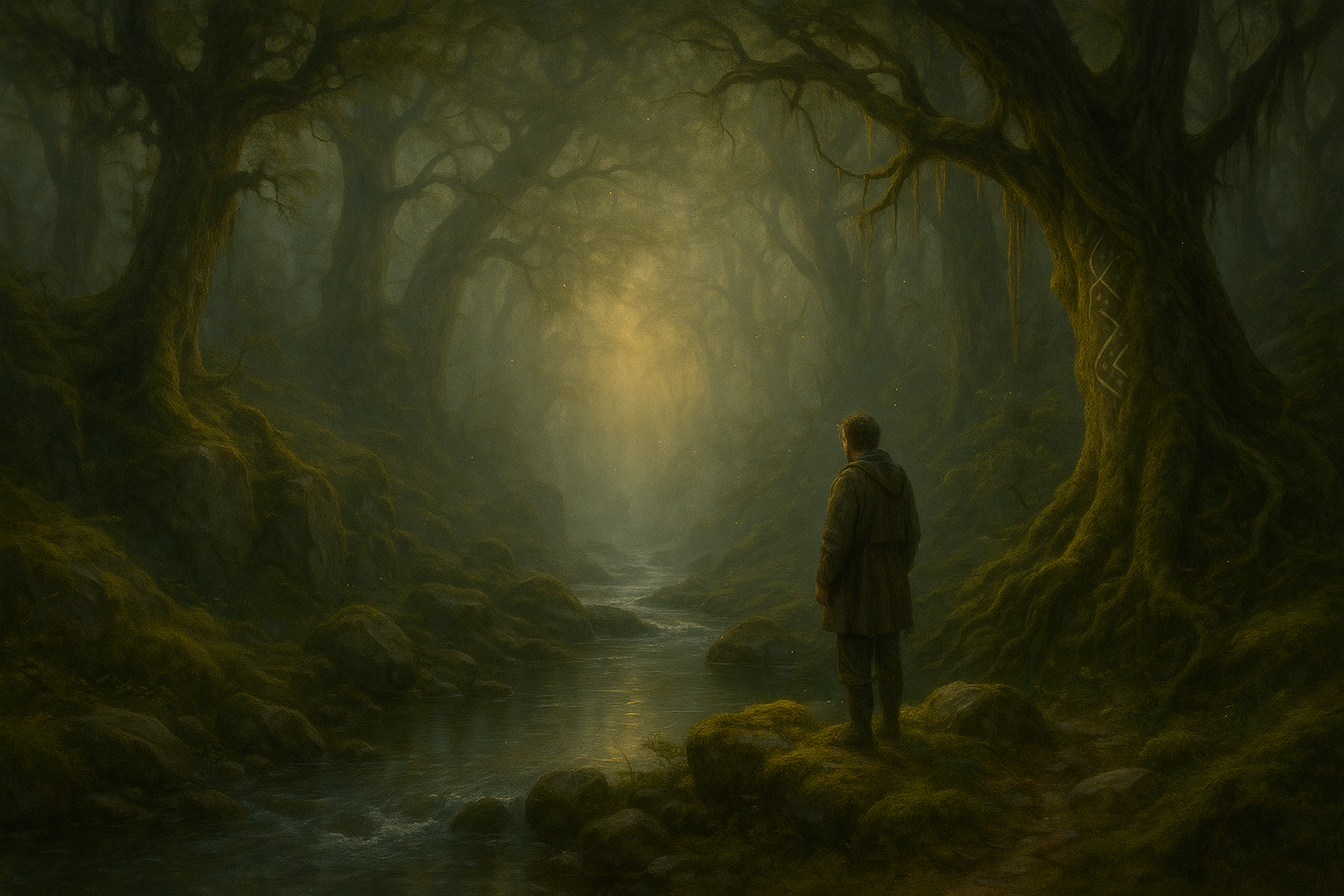Die Flüsternde Schlucht ist ein abgeschiedenes, geheimnisvolles Tal am Rand der Feuerkronenberge, das von einer faszinierenden und zugleich unheimlichen Stille erfüllt ist. Diese Stille wird nur gelegentlich von einem leisen Flüstern unterbrochen, das von den knorrigen, uralten Bäumen widerzuhallen scheint. Das Flüstern wirkt, als wäre es Teil des Ortes selbst, als ob die Schlucht eine eigene Stimme hätte, die von längst vergangenen Zeiten erzählt. Die sanften Nebel, die zwischen den massiven Stämmen der verwachsenen Eichen und den herabhängenden Ästen der Trauerweiden wabern, unterstreichen die mystische Atmosphäre. Ein ewiges Zwielicht liegt über der Schlucht, das nie ganz weicht, egal ob es Tag oder Nacht ist, wodurch die Grenze zwischen Realität und Magie hier scheinbar verschwimmt.