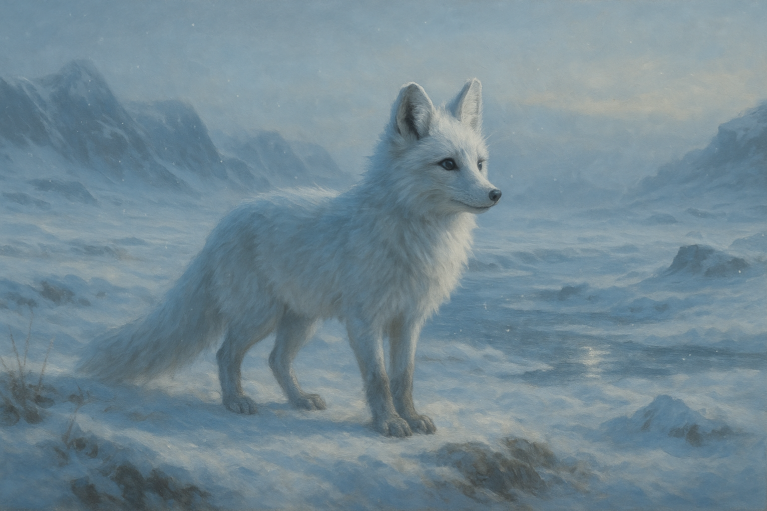 Er gilt als eines der stillsten Wesen des Nordens – kein gewöhnlicher Jäger, sondern ein Geschöpf, das die Kälte nicht bloß erträgt, sondern aus ihr hervorgegangen scheint. Viele Nordländer nennen ihn den „Atem des Winters“ und glauben, dass jeder Hrímrefur ein Stück Schneesturmseele in sich trägt. Er wandert lautlos, friert nicht und hinterlässt oft keinerlei Spuren.