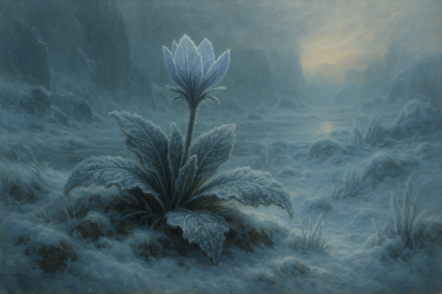 Die Frostwurz gedeiht nicht in gewöhnlichen Wäldern oder auf offenen Feldern – sie findet ihren Platz in den tiefsten Schneeverwehungen, in den Schatten von Gletscherhöhlen und an den Ufern vereister Seen. Es gibt Geschichten von Reisenden, die ihre Blüten erblickten und für einen Moment spürten, wie die Kälte selbst zu sprechen begann, ein Flüstern der gefrorenen Erde, das nur diejenigen hören können, die lange genug in der Stille verweilen. In alten Zeiten wurde die Frostwurz von den Nordkarlen als heilige Pflanze verehrt, ein Symbol der Winterkräfte, die das Land formen und zugleich bewahren. Ihre Wurzeln sind so tief in den Frost verankert, dass sie auch in den härtesten Wintern nicht vergehen – ein Beweis dafür, dass selbst in der tiefsten Kälte das Leben weiterbesteht.