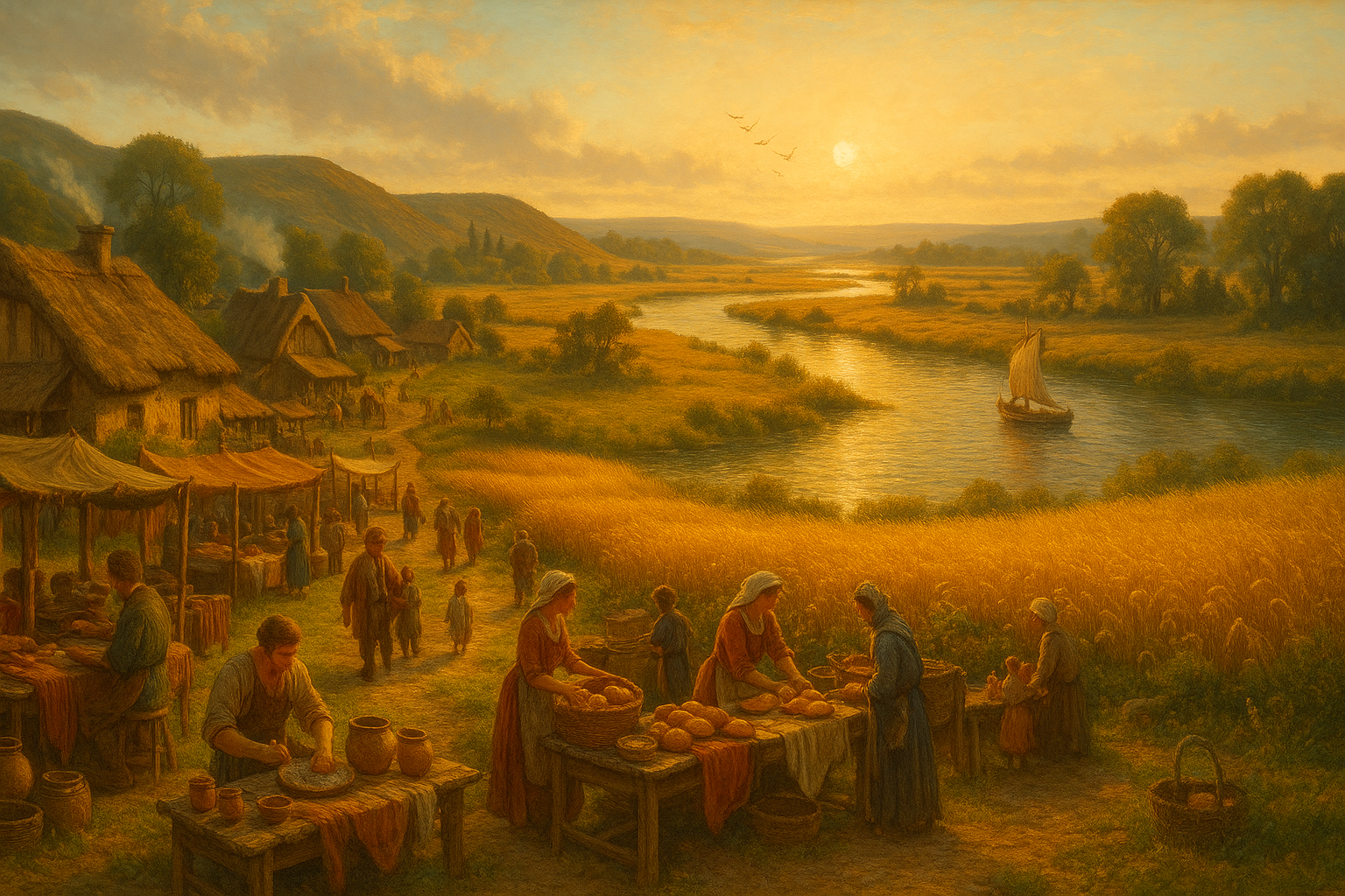 Gullvik war schon immer ein Ort der Gemeinschaft und des Austauschs, in dem die Kraft des Wassers und die Fruchtbarkeit des Landes die Entwicklung der Region vorangetrieben haben. In alten Zeiten nutzten wandernde Stämme die sanften Hügel als Rastplätze und die Flussufer als Treffpunkte für Handel und Feste. Während der Ära der Flussfürsten wurde Gullvik zu einem bedeutenden Handelszentrum, da die Strömungen des Vejdara eine schnelle Verbindung zu den umliegenden Regionen boten. Ein Wendepunkt in der Geschichte war der „Sonnenpakt“, bei dem die Dörfer entlang des Flusses sich zusammenschlossen, um ihre gemeinsamen Rechte an Land und Wasser zu sichern – eine Entscheidung, die bis heute die Struktur der Gemeinschaft prägt. Die alten Steinpfade, die sich durch die Hügel schlängeln, sind Überreste einer Zeit, in der Reisende und Händler ihre Waren auf langen Karawanen durch die Ebenen brachten. Die Legende der „Goldbäche“ erzählt von einem vergessenen Stromarm des Vejdara, der angeblich verborgen unter den Ebenen fließt und seine goldenen Sedimente nur denen offenbart, die seine Zeichen deuten können. Heute ist Gullvik eine Region voller lebendiger Traditionen, in der Vergangenheit und Gegenwart miteinander verwoben sind und die Strömung des Wassers nie stillsteht.