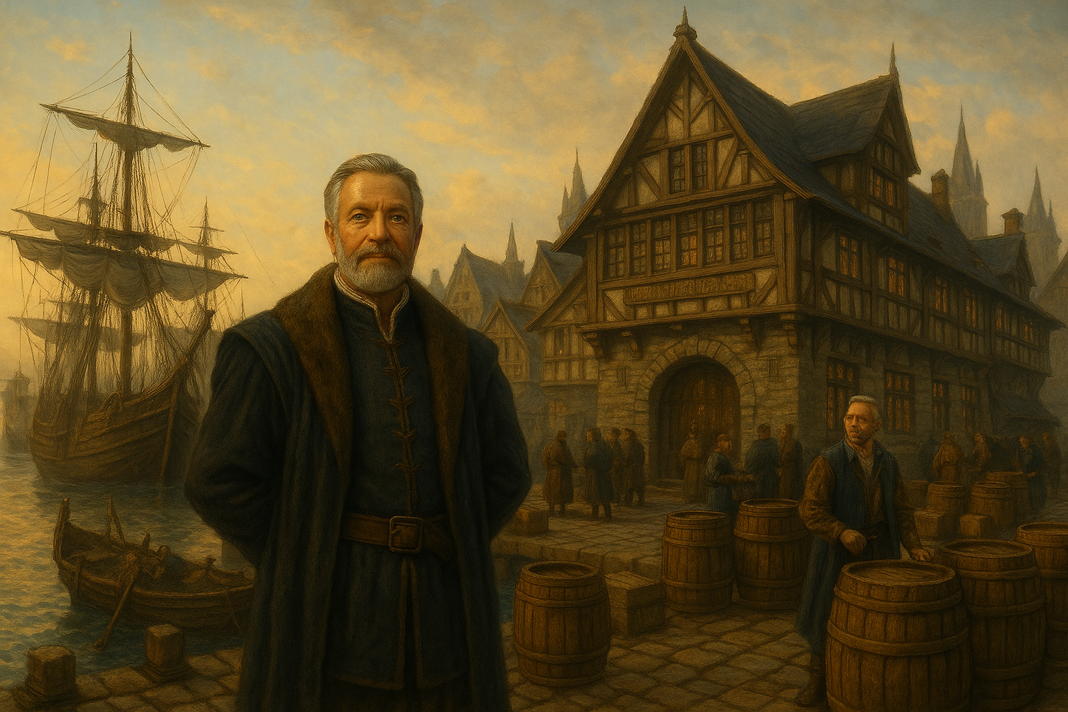 Große Frachtschiffe und Handelsschaluppen liegen Seite an Seite, während Barkassen und Fischerboote in den inneren Becken schaukeln. Das Rufen der Hafenarbeiter hallt über das Wasser, begleitet vom rhythmischen Knarren der Ladekräne und dem Takt der Schiffsglocken.