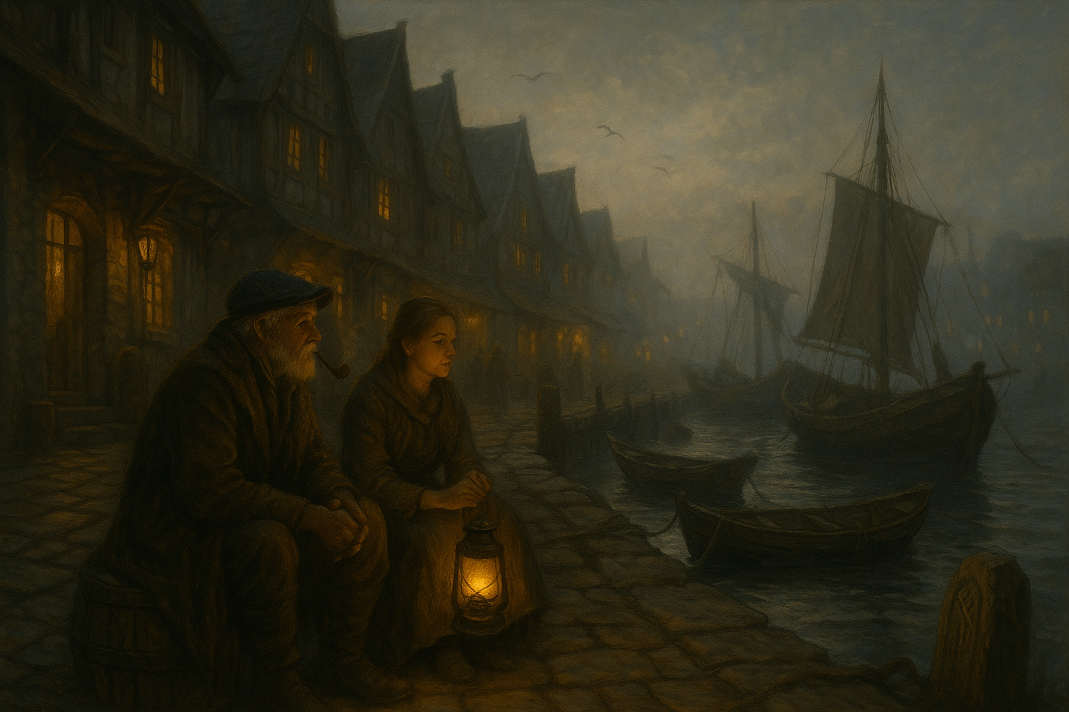 Das Hafenviertel ist das pulsierende Herz Nordhavens – Ort des Handels, des Aufbruchs und der Geschichten. Zwischen Masten und Lagerhäusern, Möwenschreien und Salznebel pulsiert hier das Leben in einem unaufhörlichen Rhythmus. Von Sonnenaufgang bis tief in die Nacht herrscht Bewegung: Schiffe werden entladen, Waren geprüft, Geschäfte geschlossen.
