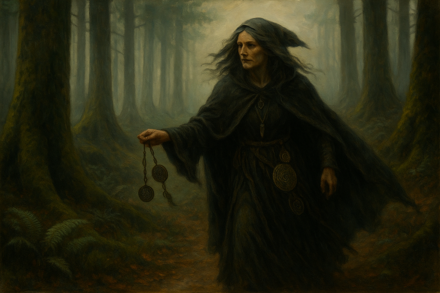 Kleidung ist mehr als ein praktisches Mittel – sie dient als Ausdruck der inneren Energien einer Hexe. Dunkle, fließende Stoffe sind die Norm, oft mit schweren Umhängen, die mit magischen Stickereien versehen sind. Besonders mächtige Hexen tragen gewebte Amulettgewänder, in die kleine Knochen oder getrocknete Pflanzen eingearbeitet sind. Kopfbedeckungen sind verbreitet, da sie den Geist vor äußeren Störungen schützen und die Verbindung zu den Ahnen bewahren.