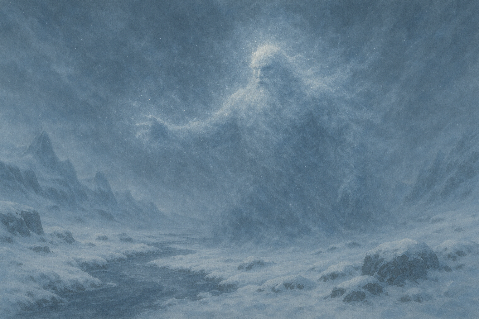 Als Frostschatten ist Hrimnir sowohl furchteinflößend als auch majestätisch, ein Gott, dessen Weisheit in den Tiefen der winterlichen Elemente ruht. Seine Anhänger verehren ihn als Hüter der Disziplin und Beständigkeit, als Mentor, der durch die Härte des Winters lehrt, innere Klarheit und Stärke zu finden. Während Eldhara Licht und Frühling bringt, bewahrt Hrimnir die frostige Ruhe und die ordnende Kraft der Kälte. Zusammen mit seiner Schwester Eldhara repräsentiert er die Dualität von Wärme und Eis, Schöpfung und Bewahrung, Wandel und Beständigkeit. Seine unvergleichliche Schönheit spiegelt sich in kunstvollen Eisformationen und seiner sphärischen Gestalt wider, die aus Nebel und gefrorenem Licht zu bestehen scheint.