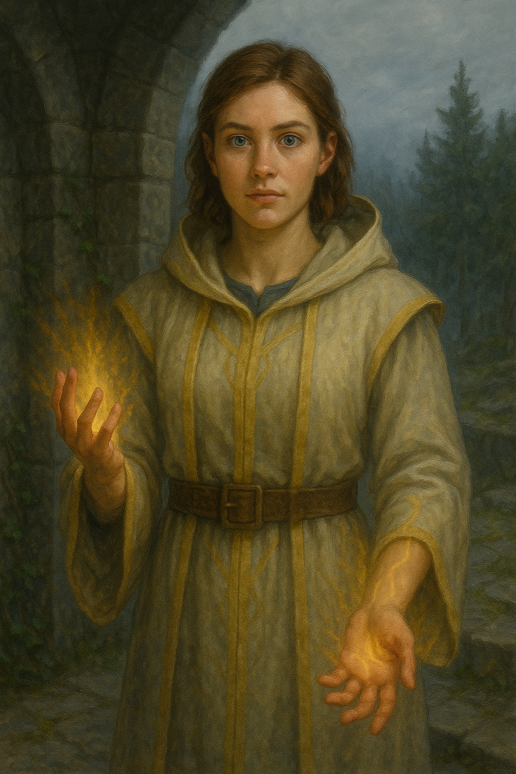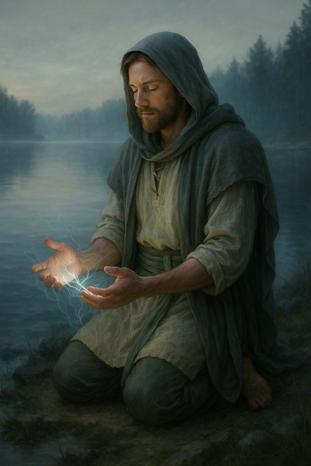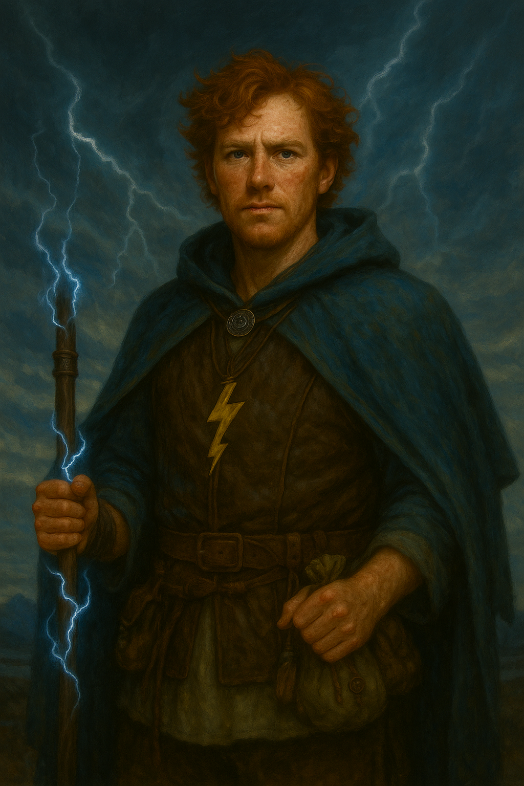 Der Sturmbinder Hafniras ist ein Heiler der Bewegung – ein Wanderer zwischen Chaos und Klarheit. Wo andere Ruhe suchen, vertraut er auf den Sturm, denn für ihn ist Leben Veränderung, und Veränderung bedeutet Erneuerung. Seine Magie ist laut, grell und lebendig: Blitze tanzen über seine Haut, Wind trägt seine Gebete fort, und selbst im Regen spürt man seine Energie wie den Herzschlag des Himmels.