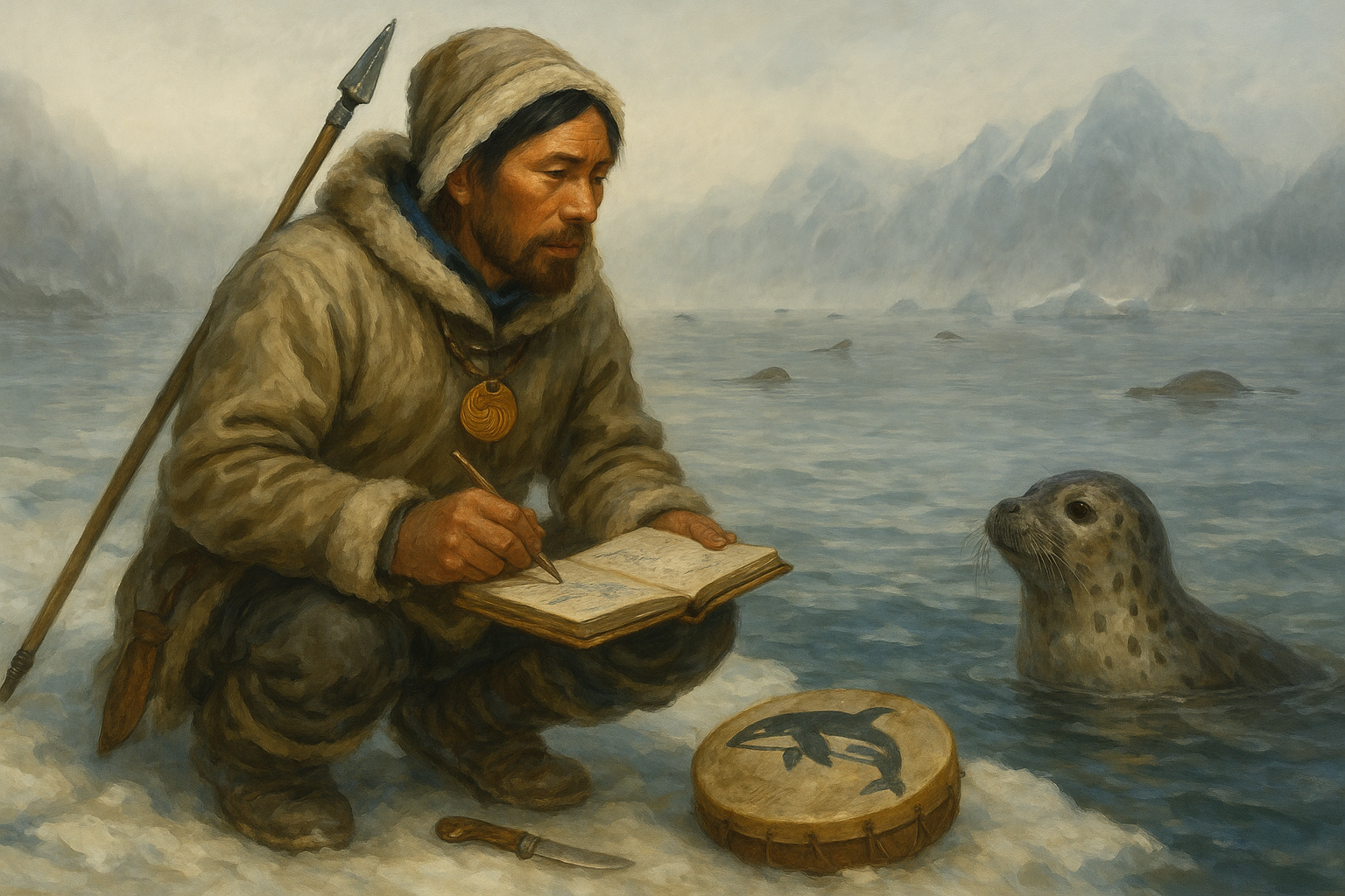 Wenn Kaikura im Wasser steht, hört er manchmal das ferne Rufen der Tiefe. In diesen Klängen spürt er Nakkuqs Herz – Erinnerung und Mitgefühl in Bewegung.