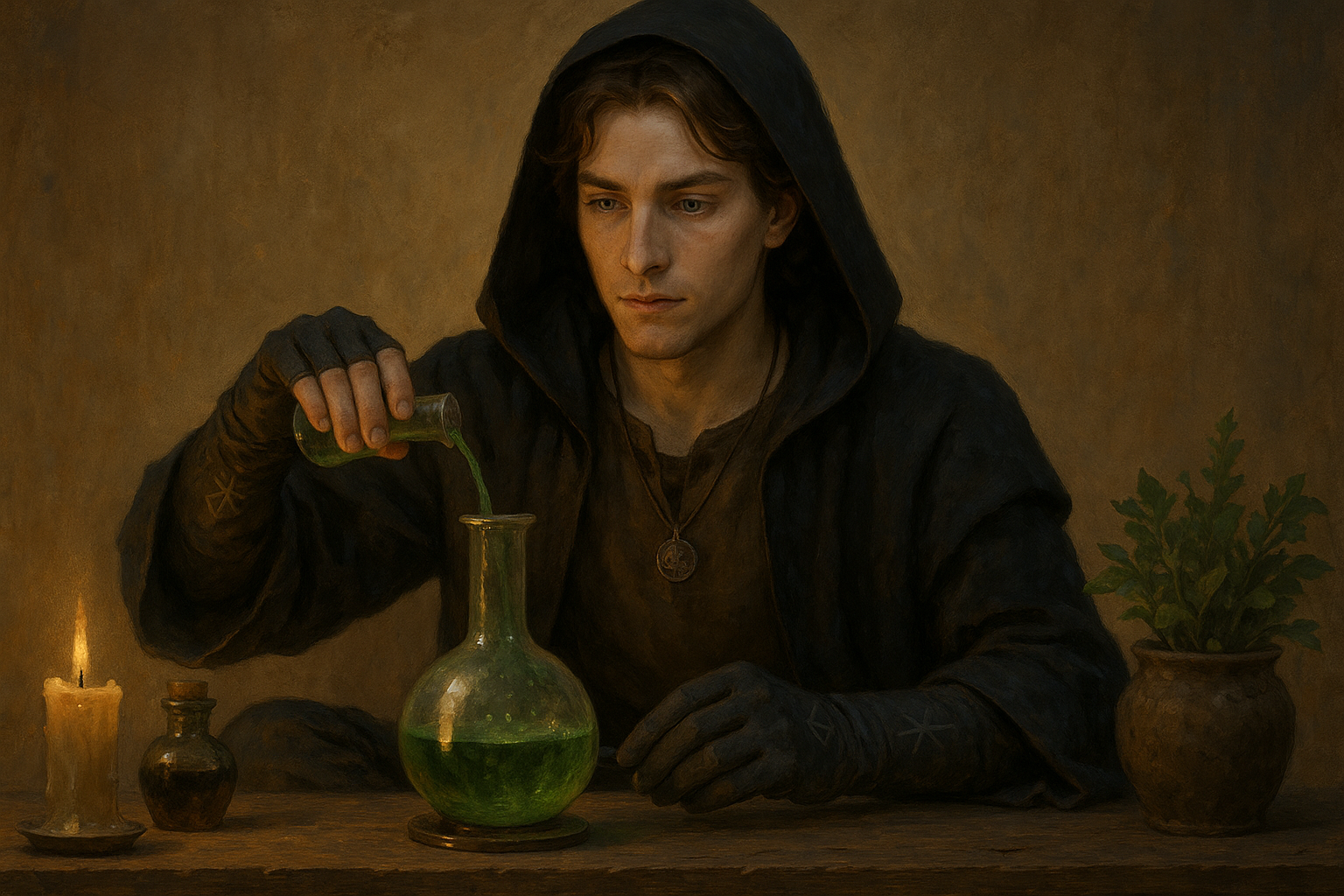 Lenrik glaubt, dass seine Wahrheit – seine Herkunft, seine Magie, seine Moral – ihn isolieren würde. Als Kind beobachtete ihn einst ein anderer Junge beim heimlichen Rühren eines glimmenden Suds, der sich in Licht auflöste. Noch am selben Abend wurde Lenrik von dessen Vater als „verflucht“ beschimpft. Es war das erste Mal, dass er verstand, wie allein man mit einem unsichtbaren Erbe sein kann. Deshalb lebt er im Verborgenen, hilft, heilt, schenkt, aber spricht nie offen.