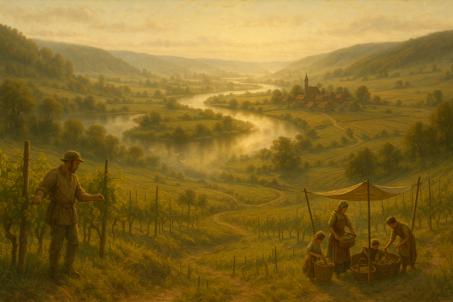 Im Hochsommer ist die Luft erfüllt vom süßen Duft reifender Trauben, während das trockene Summen der Insekten zwischen den Rebstöcken schwebt. Die Erde unter den Füßen strahlt gespeicherte Wärme ab, und die Sonnenstrahlen legen einen honigfarbenen Glanz über die sanften Hügel von Ljósdal.