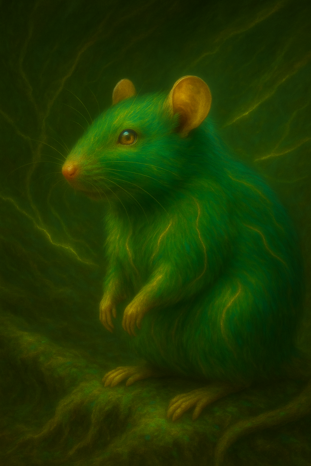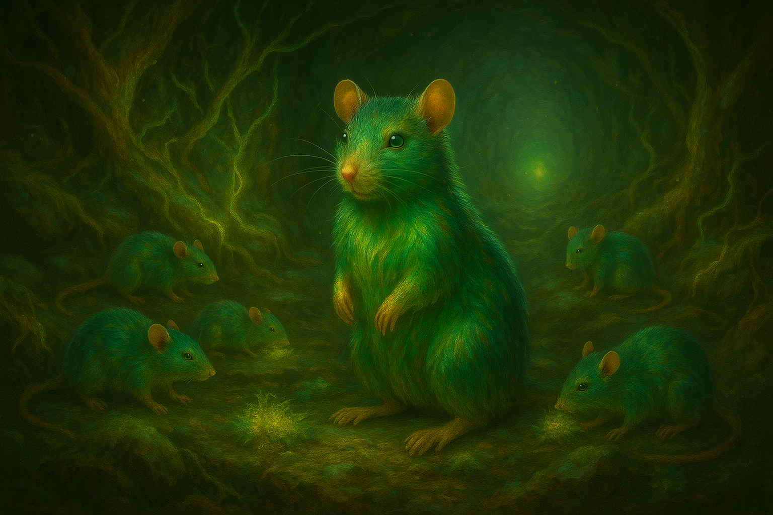 Ein Rascheln durchbricht die Stille der Tunnel. Zwischen den schimmernden Wurzeln flitzen kleine Gestalten hindurch – ihr Fell leuchtet in grünlich-goldenem Glanz, als trügen sie Funken aus Licht unter der Haut. Ihr leises Zirpen hallt in den Kammern wider, ein Ton zwischen Summen und Wispern, getragen von der lebenden Energie, die durch die Gänge strömt.
