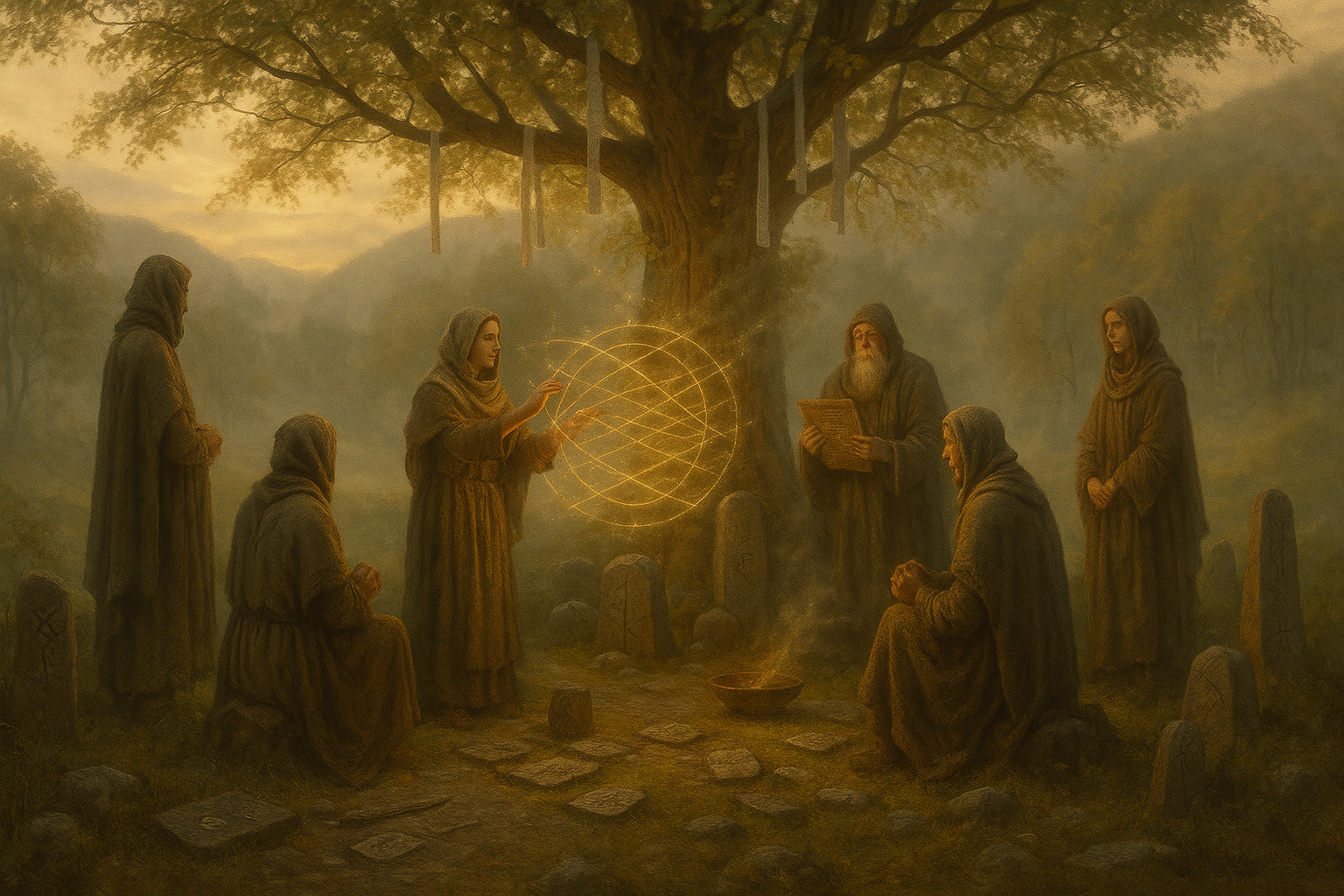 Im Herzen des Waldes erhebt sich die Schwarzwurzel, eine gewaltige Eibe, deren Stamm so breit ist, dass man ihn nur mit mehreren Menschen umfassen könnte. Ihre knorrigen Äste ragen in den Himmel, während ihre Wurzeln tief in die Erde greifen – als würden sie die Geheimnisse des Landes bewahren. Sie gilt als heiliger Ort, verehrt von jenen, die glauben, dass die Schwarzwurzel die Grenze zwischen den Welten berührt. Ihr Anwuchs scheint unverwüstlich, ihr Schatten reicht weit und ihre Stille trägt die Weisheit eines uralten Wesens.
