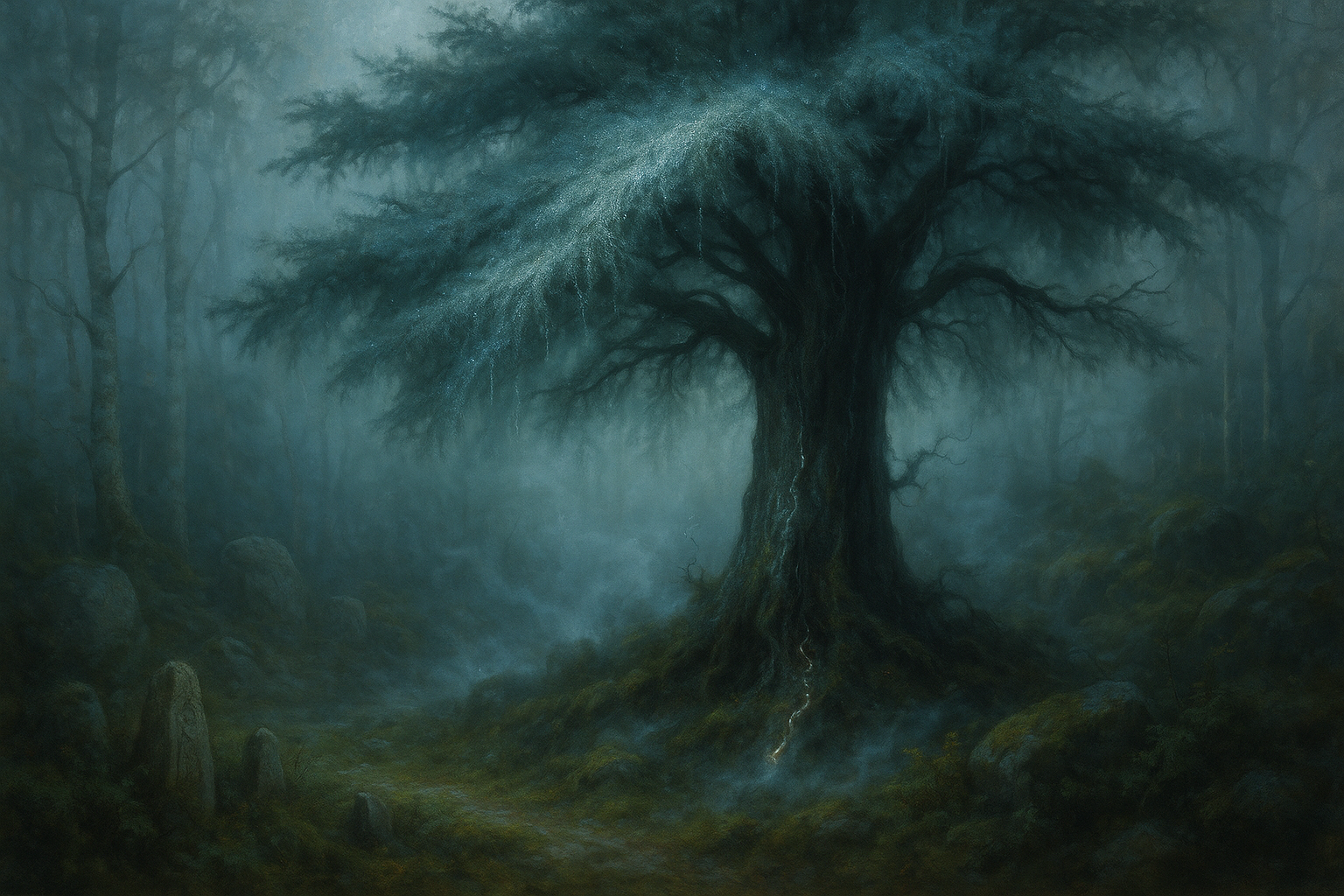 Diese seltene Eibe wächst nur in nebligen Tälern und entlang der vergessenen Pfade der Runenmeister. Ihre Nadeln besitzen eine feine, silbrige Schicht, die Feuchtigkeit speichert und langsam in die Pflanze zurückführt. Ihre Rinde enthält eine Essenz, die das Erinnerungsvermögen schärft und in kleinen Dosen als Zutat für Klarheitselixiere verwendet wird. Magier nutzen sie, um alte Sprachen und Symbole zu entschlüsseln, doch wer sie zu oft konsumiert, riskiert, von flüchtigen Erinnerungen heimgesucht zu werden – Gesichter und Stimmen aus der Vergangenheit, die nie ganz verblassen. Die Weisen sagen, dass die stärksten Tränke aus Skuggnebb nur bei Nebel gebraut werden können, wenn die Pflanze ihre Kraft voll entfaltet.