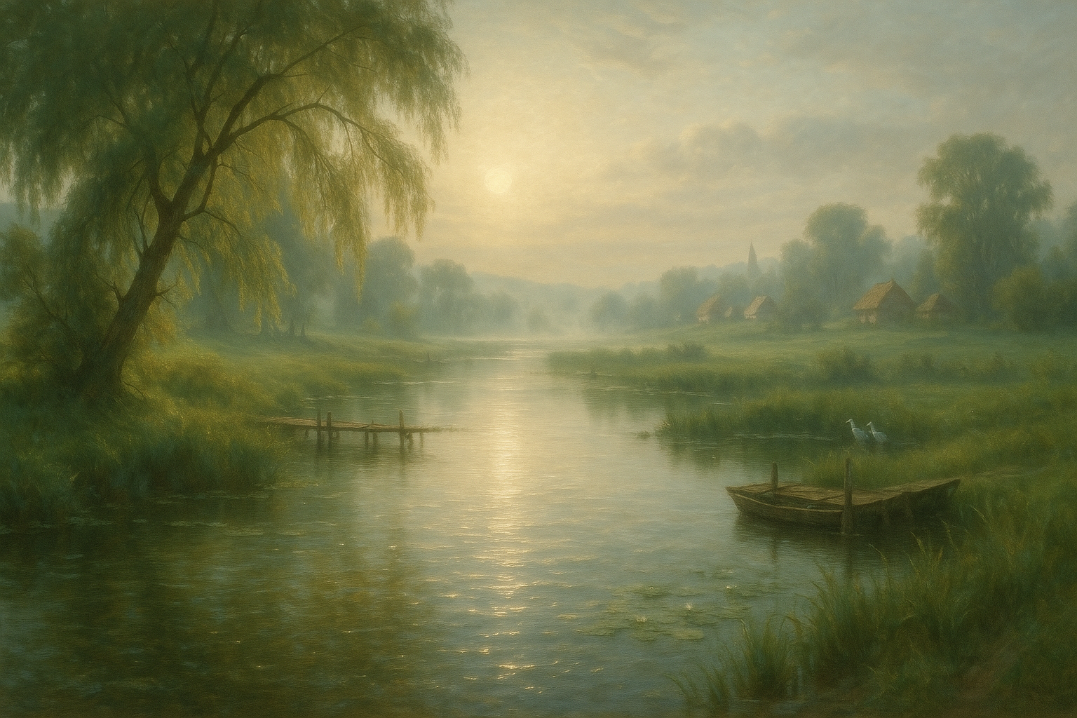Sylvannaquor ist eine Region, die von den sanften Bewegungen des Wassers geprägt wird, ein Land, in dem die Flüsse nicht nur die Landschaft formen, sondern auch das Leben der Bewohner leiten. Der klare Schein der Wasserflächen spiegelt das Licht der tiefstehenden Sonne, sodass es manchmal scheint, als wäre die ganze Region in ein silbriges Leuchten getaucht. Entlang der Ufer gedeihen Pflanzen, die das Wasser filtern und ihm eine beinahe magische Reinheit verleihen, während kleine Holzstege in die ruhigen Seitenarme hineinführen. Die Menschen hier leben mit dem Wasser, nicht gegen es – ihre Dörfer liegen an den Flussläufen, ihre Boote gleiten lautlos über die Oberfläche, und ihre Geschichten handeln von der uralten Bindung zwischen Land und Strömung. Alte Schriften berichten von heilkräftigen Quellen, die verborgen unter den Wiesen sprudeln und von Reisenden besucht wurden, die Linderung suchten. In der Dämmerung erwacht das silberne Leuchten der Ströme, und die Fischer werfen ihre Netze in die reflektierenden Wellen, während der Himmel in weichen Farbtönen verglüht. Viele glauben, dass das Wasser der Sylvannaquor-Flüsse nicht nur Nahrung bringt, sondern auch Geheimnisse bewahrt – Erinnerungen, die in den Strömungen flüstern und ihre eigenen Legenden erzählen. Es ist eine Region, die im Fluss bleibt, beständig und doch ständig im Wandel, ein Ort, an dem Vergangenheit und Gegenwart im sanften Gleiten des Wassers miteinander verschmelzen.